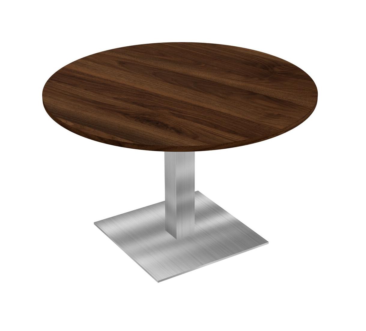 Table Modulaire Pour Bureau, Restaurant, Cafétéria, Salle De Pause Et Service De Restauration, Avec Plateau En Noyer De Colombie, Pieds Carrés Chromés Et Plaque De Base Carrée Chromée