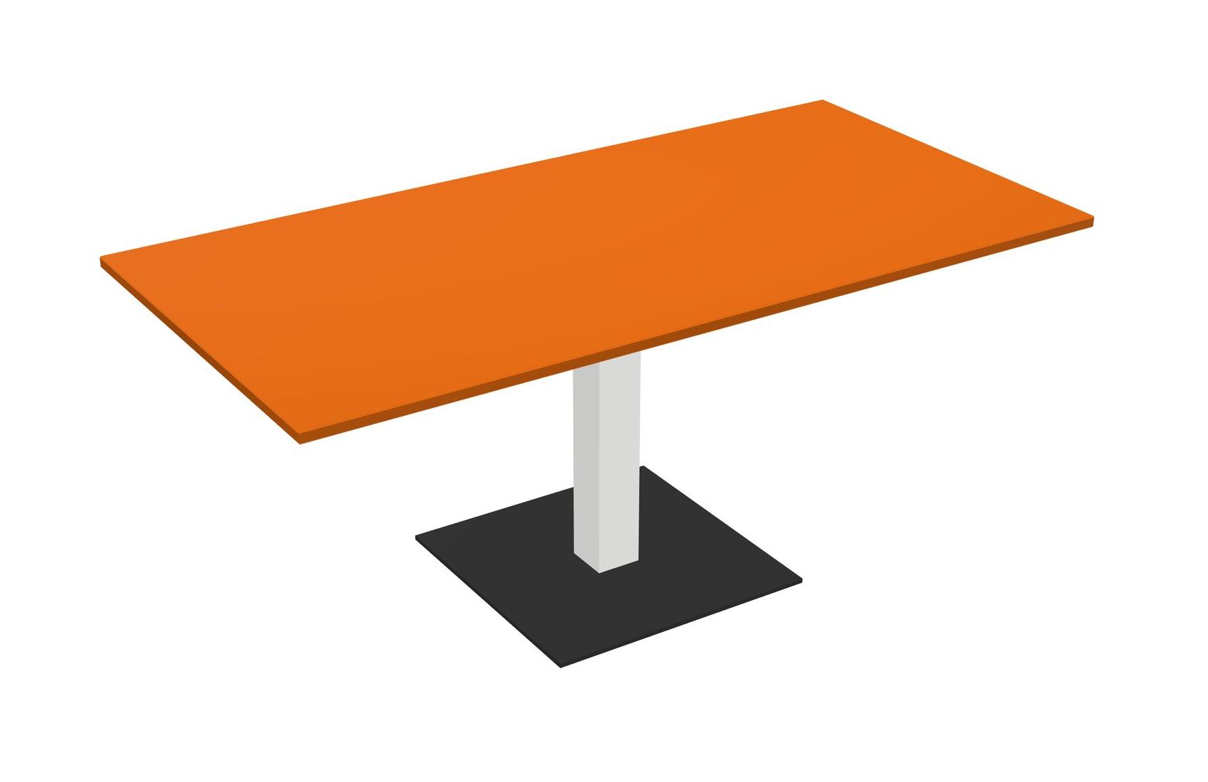 Table Modulaire Pour Bureau, Restaurant, Cafétéria, Salle De Pause Et Service De Restauration, Avec Plateau Orange, Pieds Carrés Blancs Et Base Carrée Noire