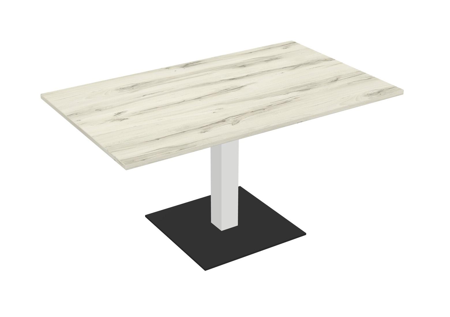 Table Modulaire Pour Bureau, Restaurant, Cafétéria, Salle De Pause Et Service De Restauration, Avec Plateau En Bois Heinne Holz, Pieds Carrés Blancs Et Plaque De Base Carrée Noire