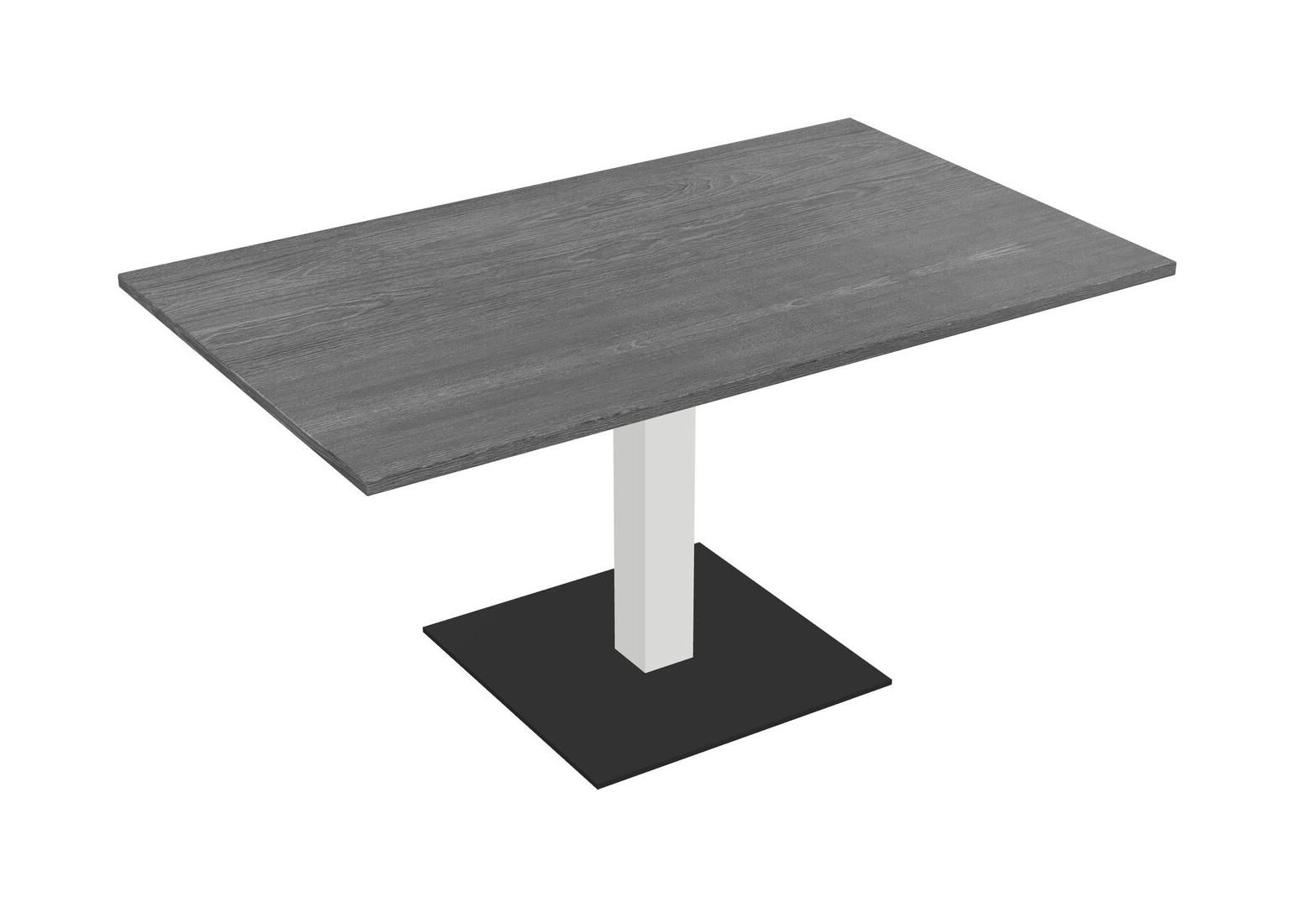 Table Modulaire Pour Bureau, Restaurant, Cafétéria, Salle De Pause Et Service De Restauration, Avec Plateau Gris, Pieds Carrés Blancs Et Base Carrée Noire