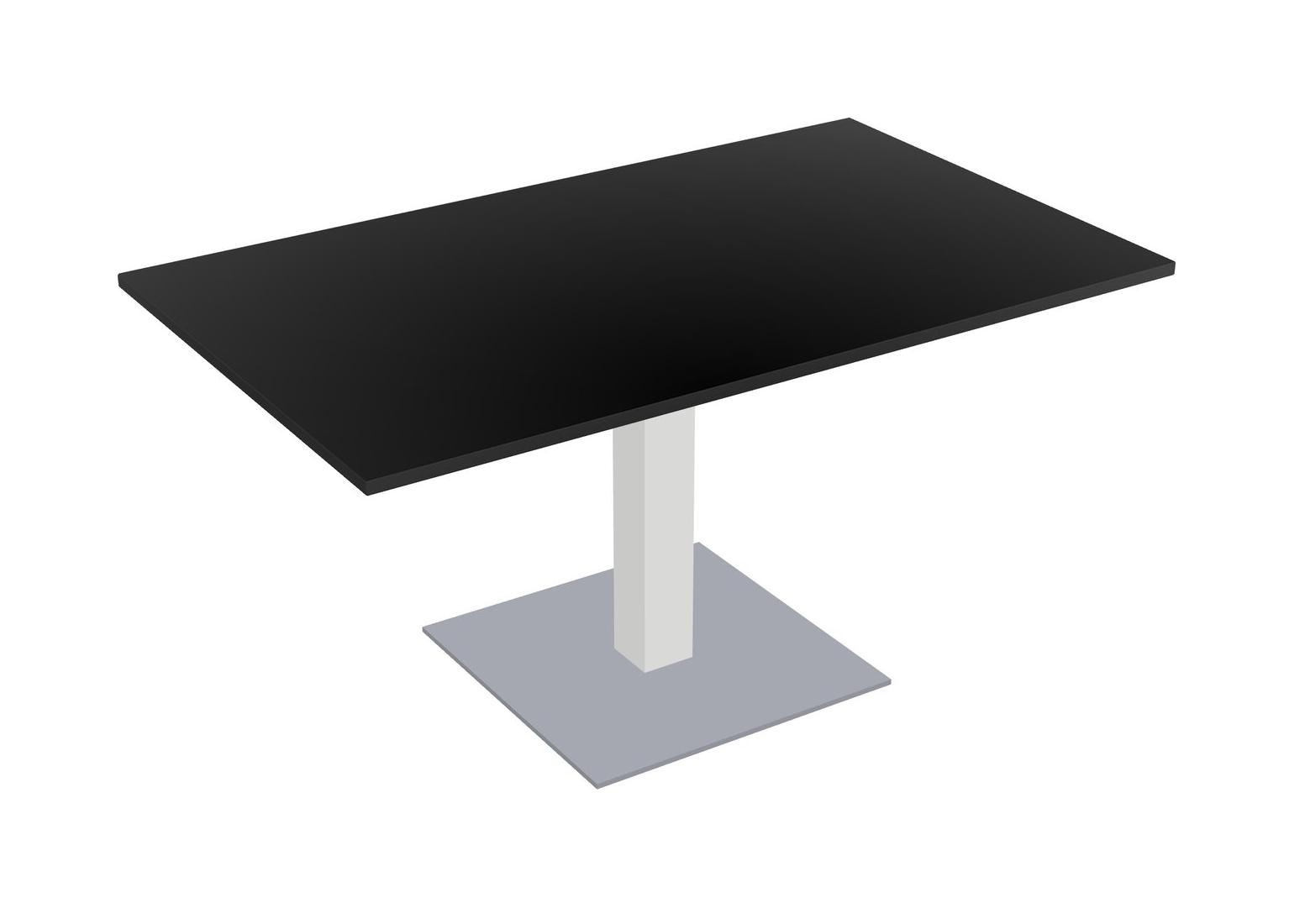 Table Modulaire Pour Bureau, Restaurant, Cafétéria, Salle De Pause Et Service De Restauration, Avec Plateau Noir, Pieds Carrés Blancs Et Base Carrée Grise