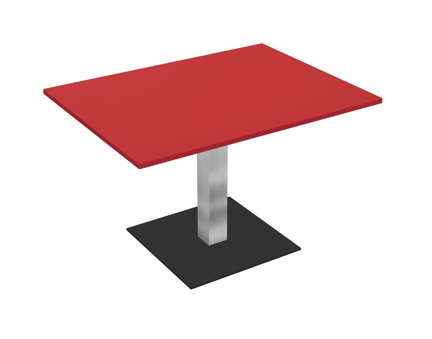 Table Modulaire Pour Bureau, Restaurant, Cafétéria, Salle De Pause Et Service De Restauration, Avec Plateau Rouge Prismatique, Pieds Carrés Chromés Et Plaque De Base Carrée Noire