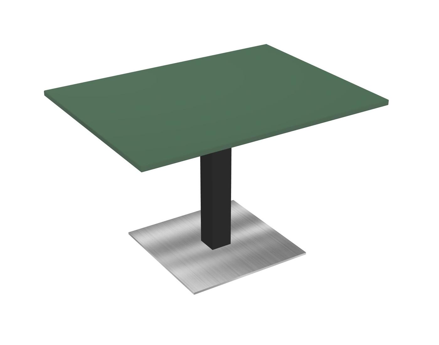 Table Modulaire Pour Bureau, Restaurant, Cafétéria, Salle De Pause Et Service De Restauration, Avec Plateau Vert, Pieds Carrés Noirs Et Plaque De Base Carrée Chromée