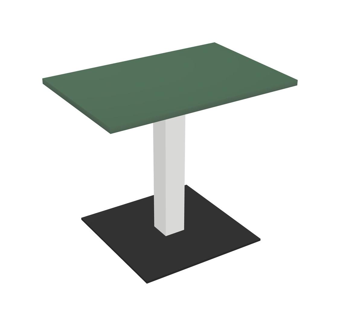 Table Modulaire Pour Bureau, Restaurant, Cafétéria, Salle De Pause Et Service De Restauration, Avec Plateau Vert, Pieds Carrés Blancs Et Base Carrée Noire