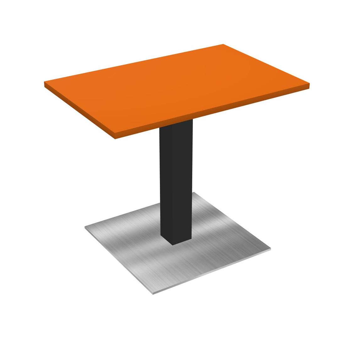 Table Modulaire Pour Bureau, Restaurant, Cafétéria, Salle De Pause Et Service De Restauration, Avec Plateau Orange, Pieds Carrés Noirs Et Plaque De Base Carrée Chromée