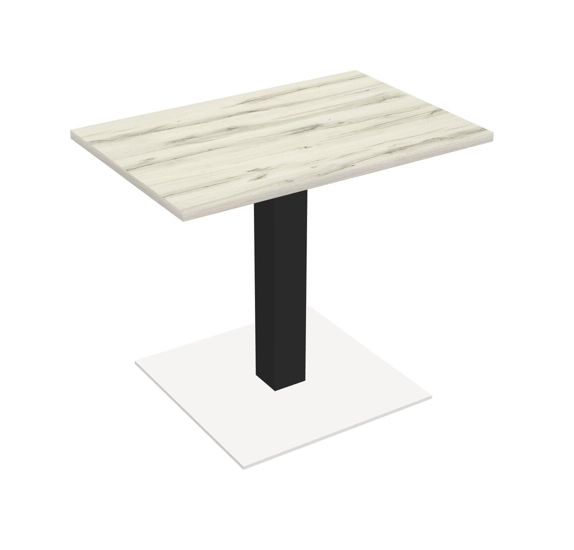 Table Modulaire Pour Bureau, Restaurant, Cafétéria, Salle De Pause Et Service De Restauration, Avec Plateau En Bois Heinne Holz, Pieds Carrés Noirs Et Plaque De Base Carrée Blanche