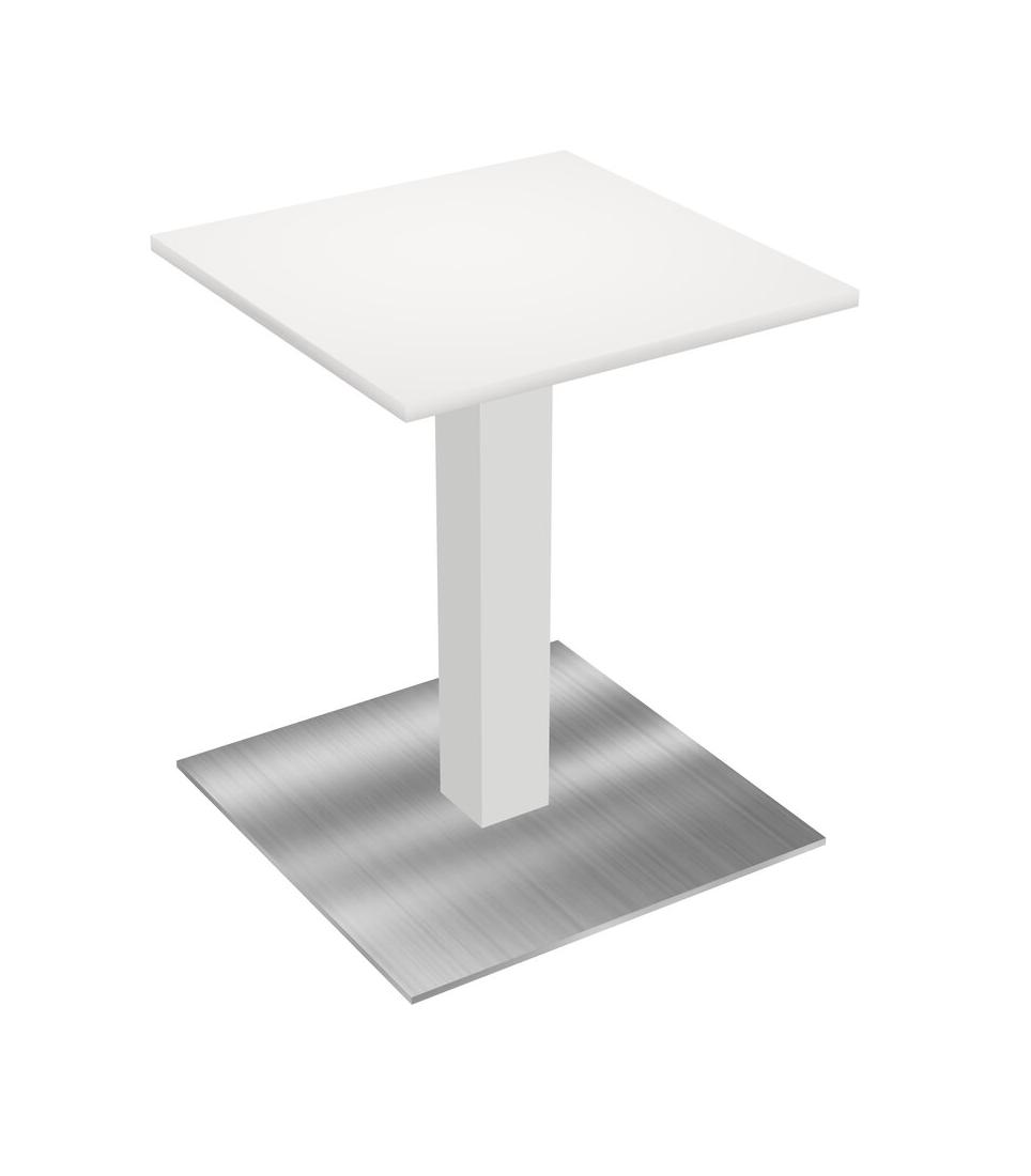 Table Modulaire Pour Bureau, Restaurant, Cafétéria, Salle De Pause Et Service De Restauration, Avec Plateau Blanc, Pieds Carrés Blancs Et Base Carrée Chromée