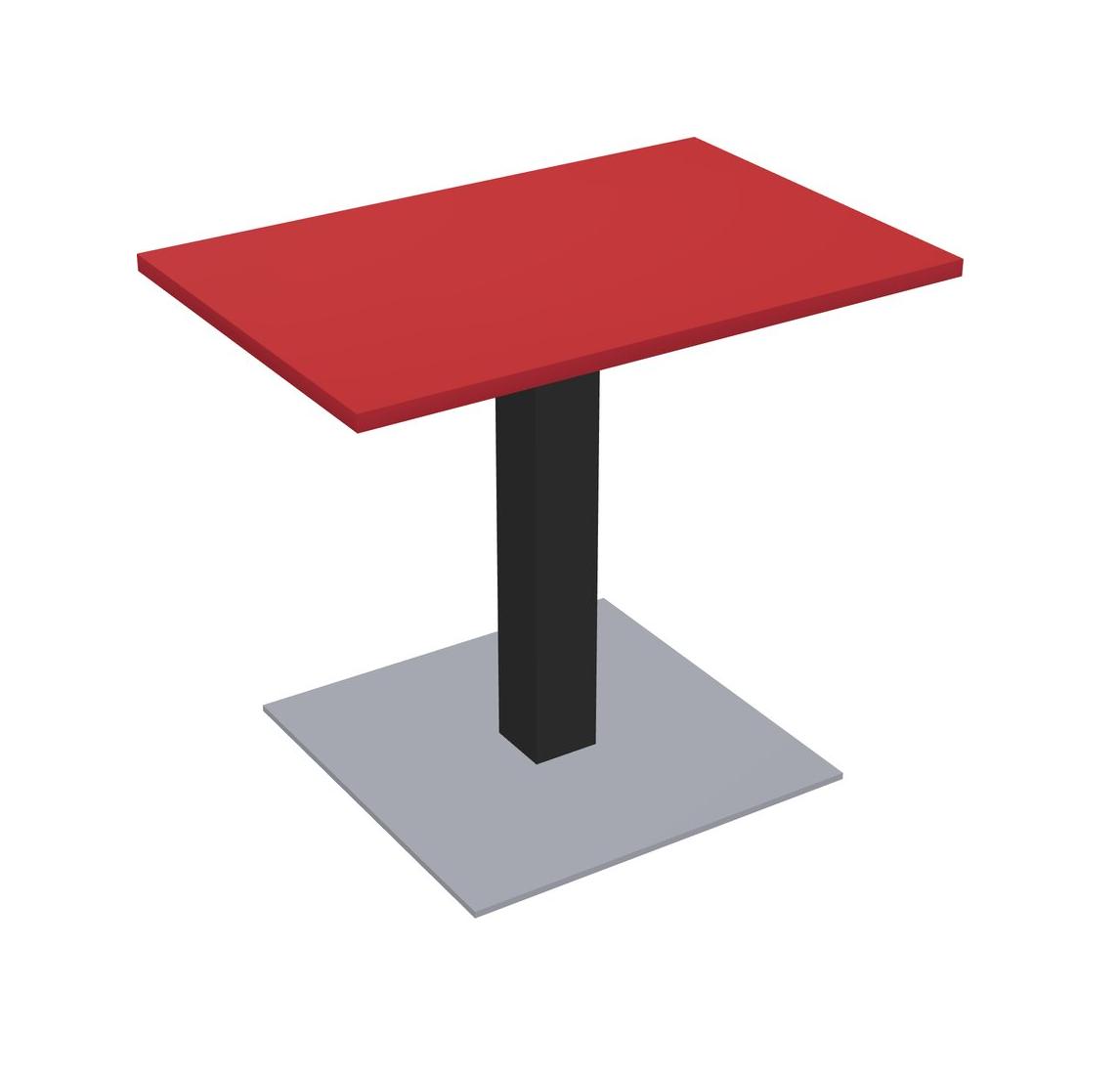 Table Modulaire Pour Bureau, Restaurant, Cafétéria, Salle De Pause Et Service De Restauration, Avec Plateau Rouge Prismatique, Pieds Carrés Noirs Et Plaque De Base Carrée Grise