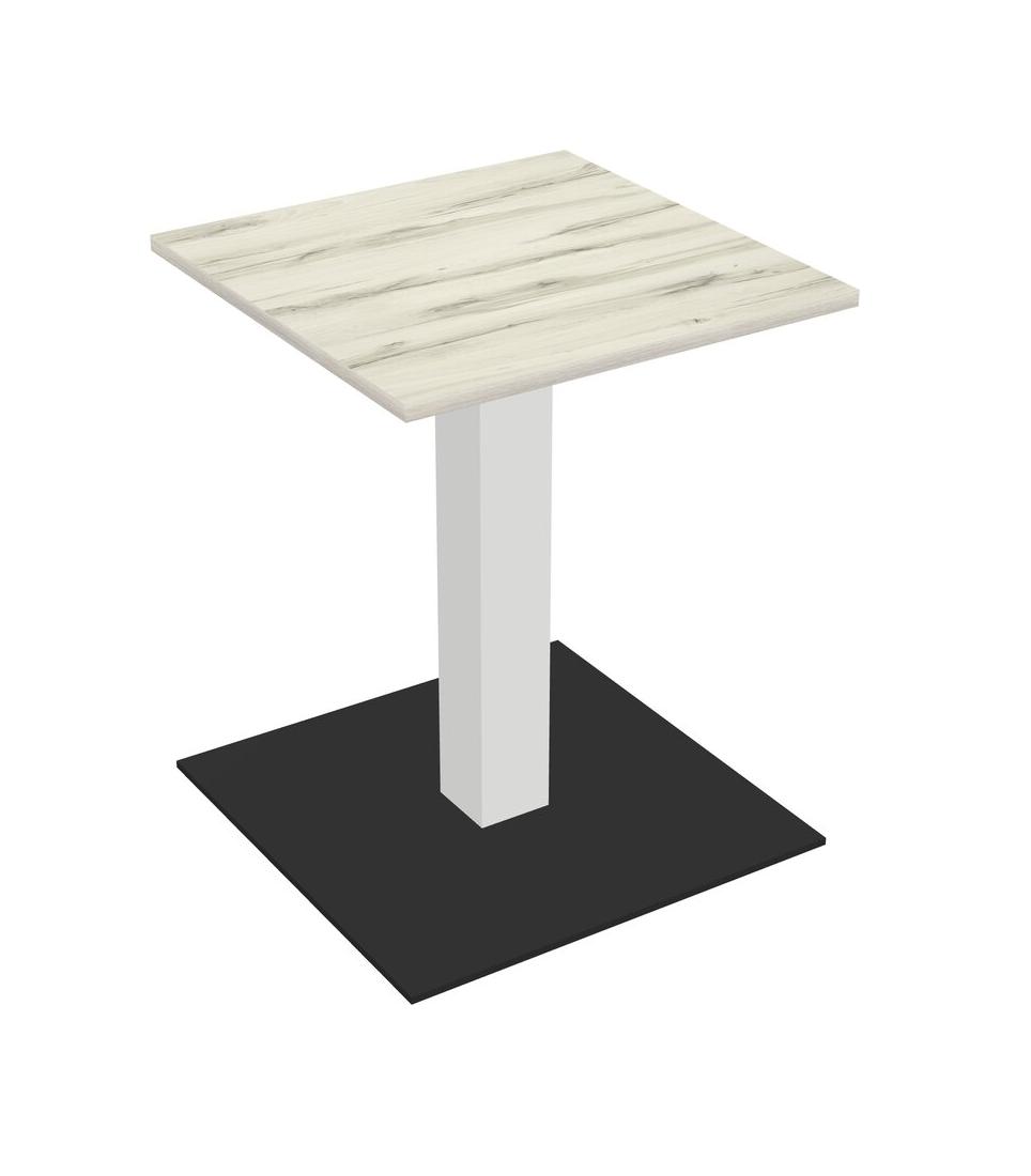 Table Modulaire Pour Bureau, Restaurant, Cafétéria, Salle De Pause Et Service De Restauration, Avec Plateau En Bois Heinne Holz, Pieds Carrés Blancs Et Plaque De Base Carrée Noire