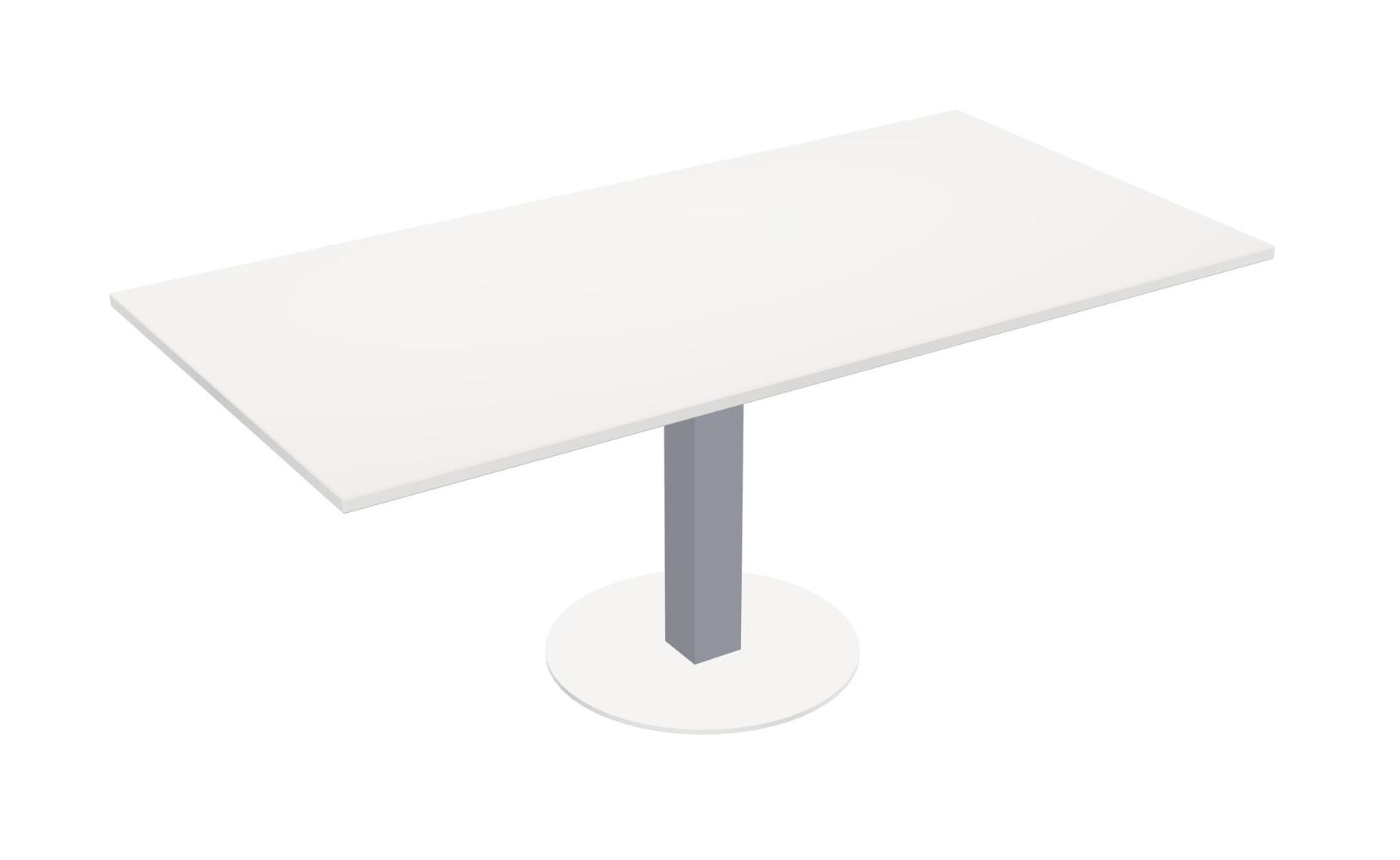 Table Modulaire Pour Bureau, Restaurant, Cafétéria, Salle De Pause Et Service De Restauration, Avec Plateau Blanc, Pieds Carrés Gris Et Base Ronde Blanche