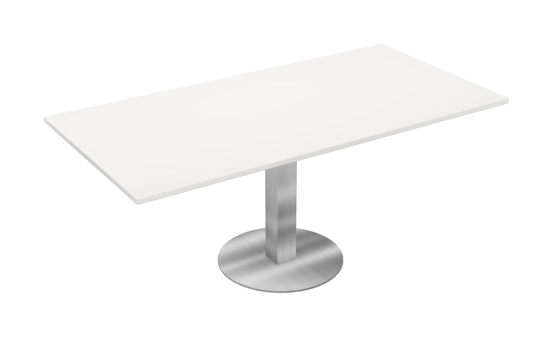 Table Modulaire Pour Bureau, Restaurant, Cafétéria, Salle De Pause Et Service De Restauration, Avec Plateau Blanc, Pieds Carrés Chromés Et Base Ronde Chromée