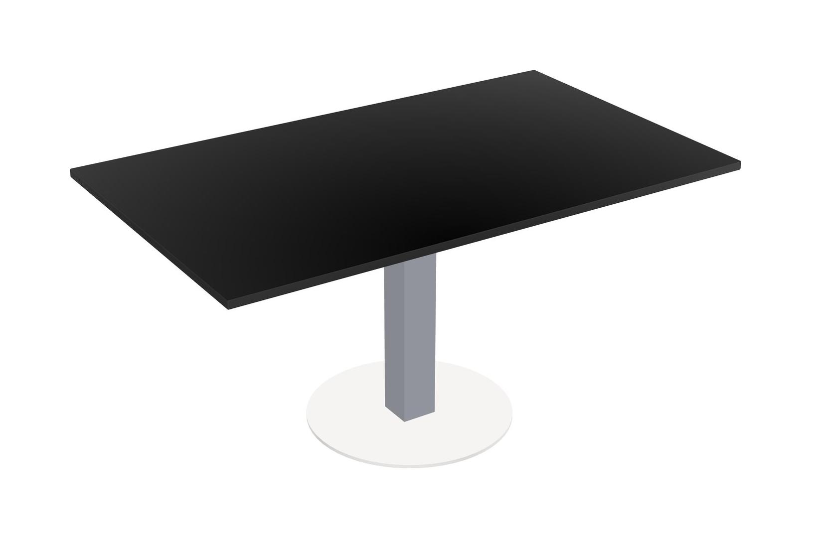Table Modulaire Pour Bureau, Restaurant, Cafétéria, Salle De Pause Et Service De Restauration, Avec Plateau Noir, Pieds Carrés Gris Et Base Ronde Blanche