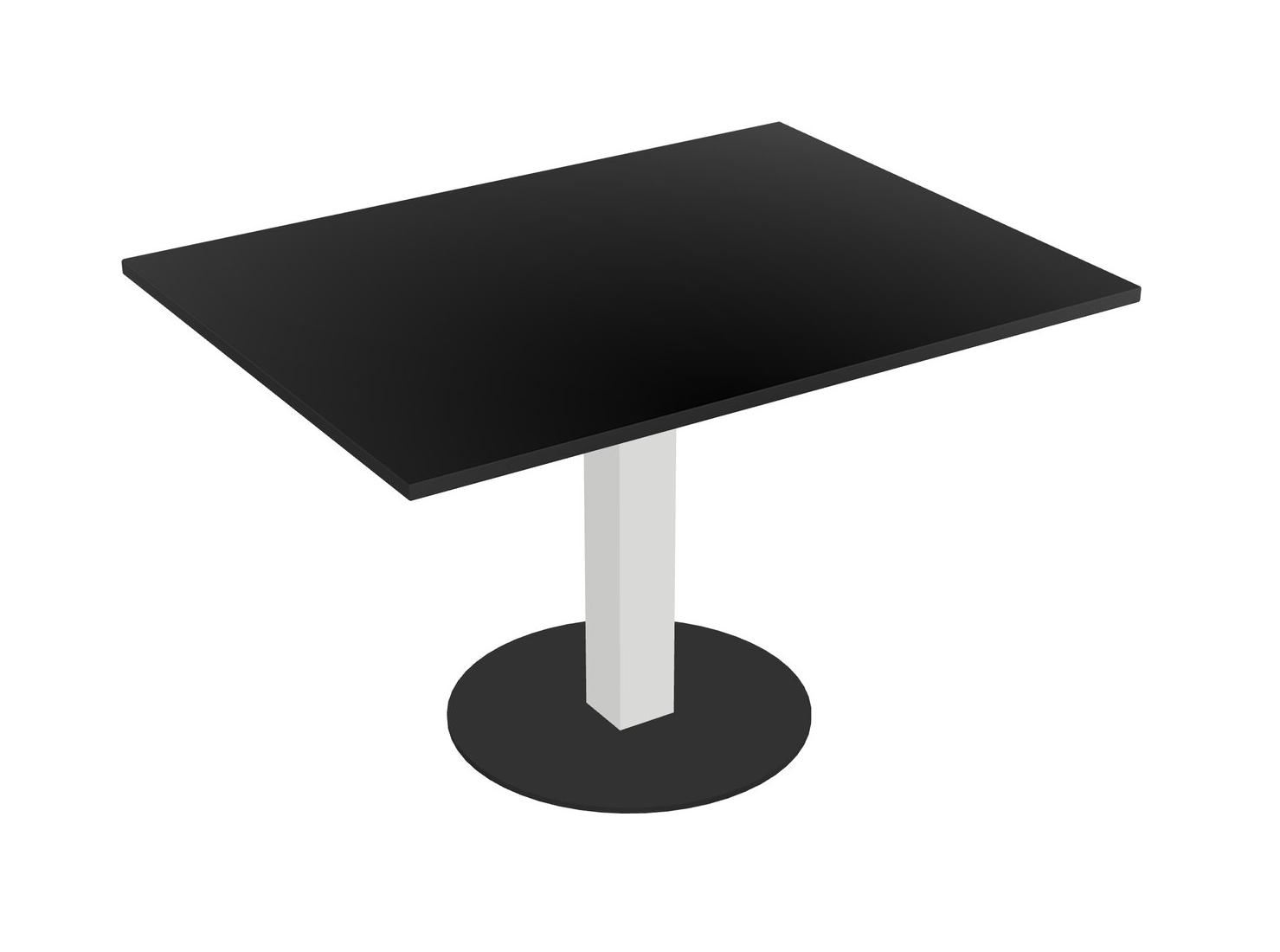 Table Modulaire Pour Bureau, Restaurant, Cafétéria, Salle De Pause Et Service De Restauration, Avec Plateau Noir, Pieds Carrés Blancs Et Base Ronde Noire
