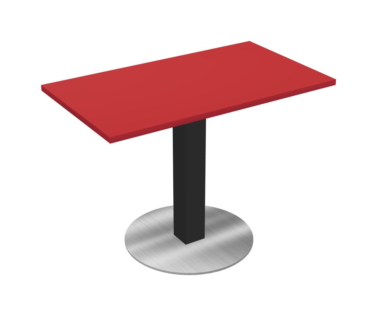 Table Modulaire Pour Bureau, Restaurant, Cafétéria, Salle De Pause Et Service De Restauration, Avec Plateau Rouge Prismatique, Pieds Carrés Noirs Et Base Ronde Chromée