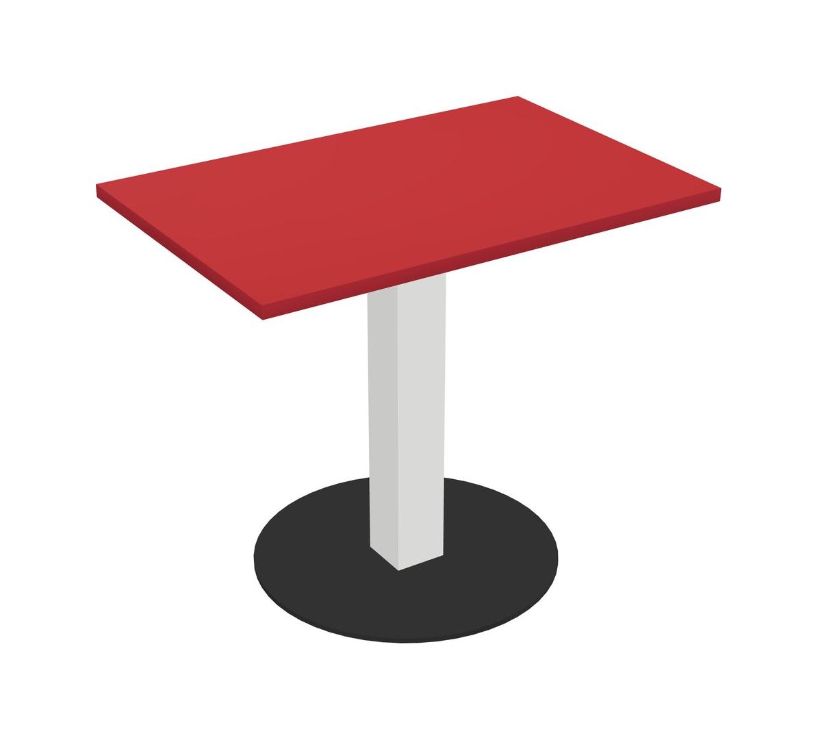Table Modulaire Pour Bureau, Restaurant, Cafétéria, Salle De Pause Et Service De Restauration, Avec Plateau Rouge Prismatique, Pieds Carrés Blancs Et Base Ronde Noire