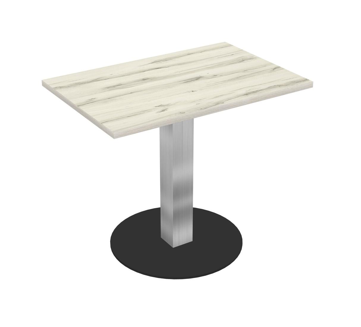 Table Modulaire Pour Bureau, Restaurant, Cafétéria, Salle De Pause Et Service De Restauration, Avec Plateau En Bois Heinne Holz, Pieds Carrés Chromés Et Base Ronde Noire