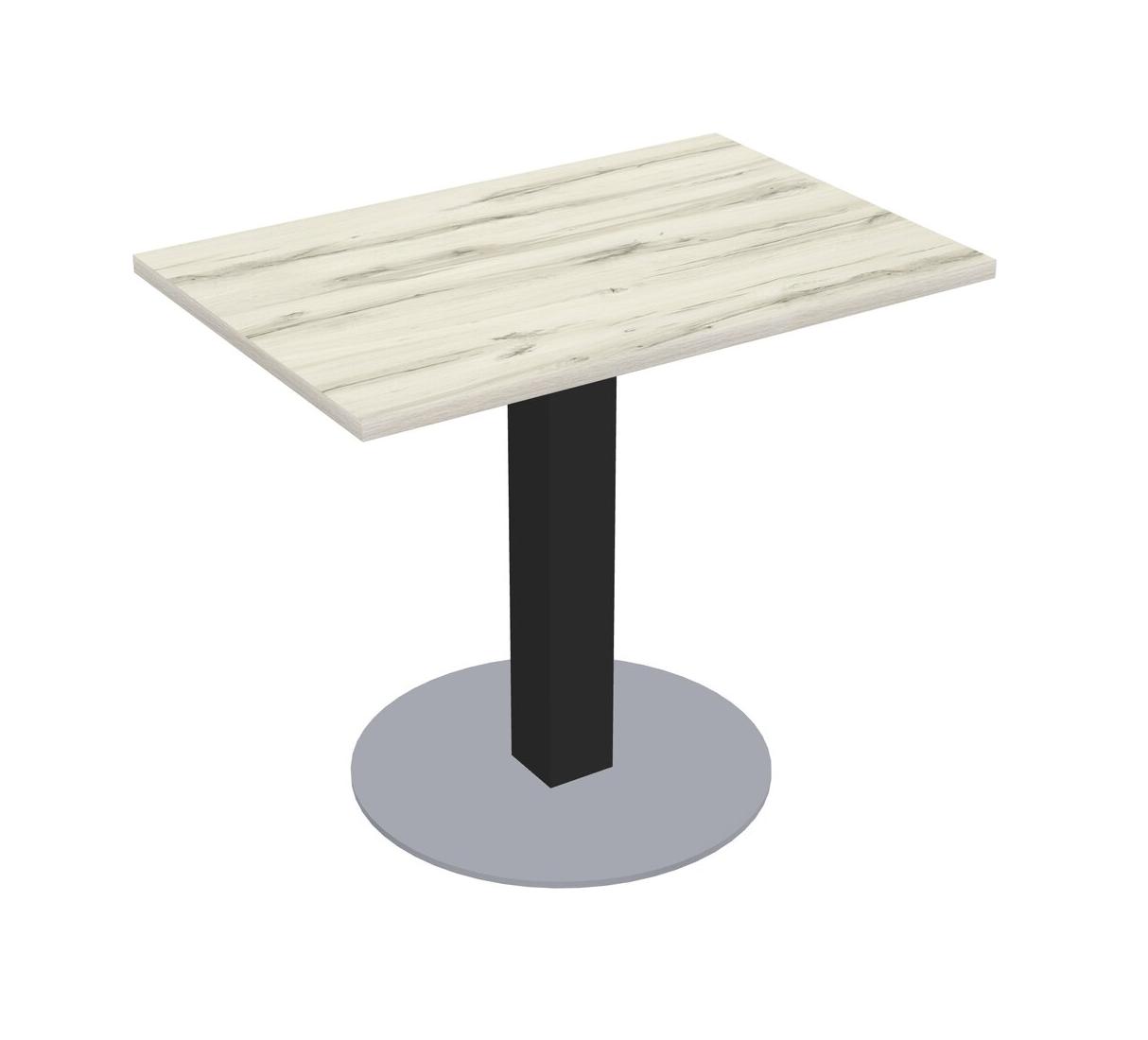 Table Modulaire Pour Bureau, Restaurant, Cafétéria, Salle De Pause Et Service De Restauration, Avec Plateau En Bois Heinne Holz, Pieds Carrés Noirs Et Base Ronde Grise