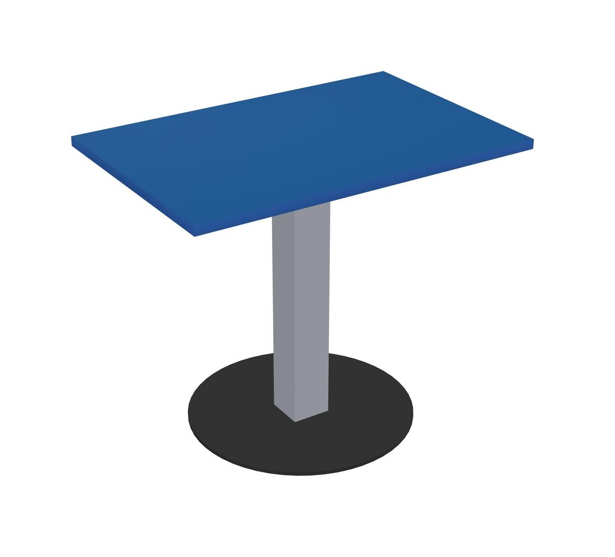 Table Modulaire Pour Bureau, Restaurant, Cafétéria, Salle De Pause Et Service De Restauration, Avec Plateau Bleu Prismatique, Pieds Carrés Gris Et Base Ronde Noire