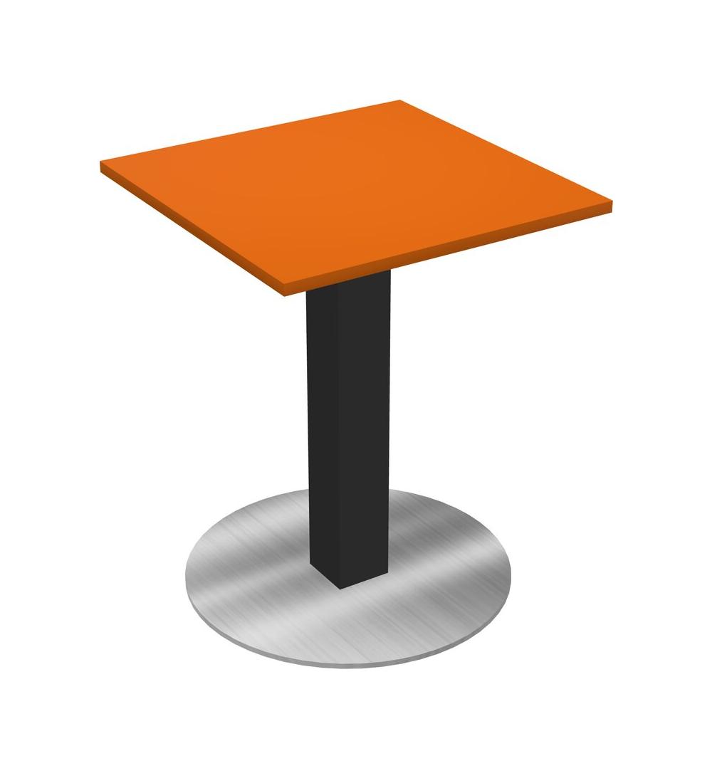 Table Modulaire Pour Bureau, Restaurant, Cafétéria, Salle De Pause Et Service De Restauration, Avec Plateau Orange, Pieds Carrés Noirs Et Base Ronde Chromée