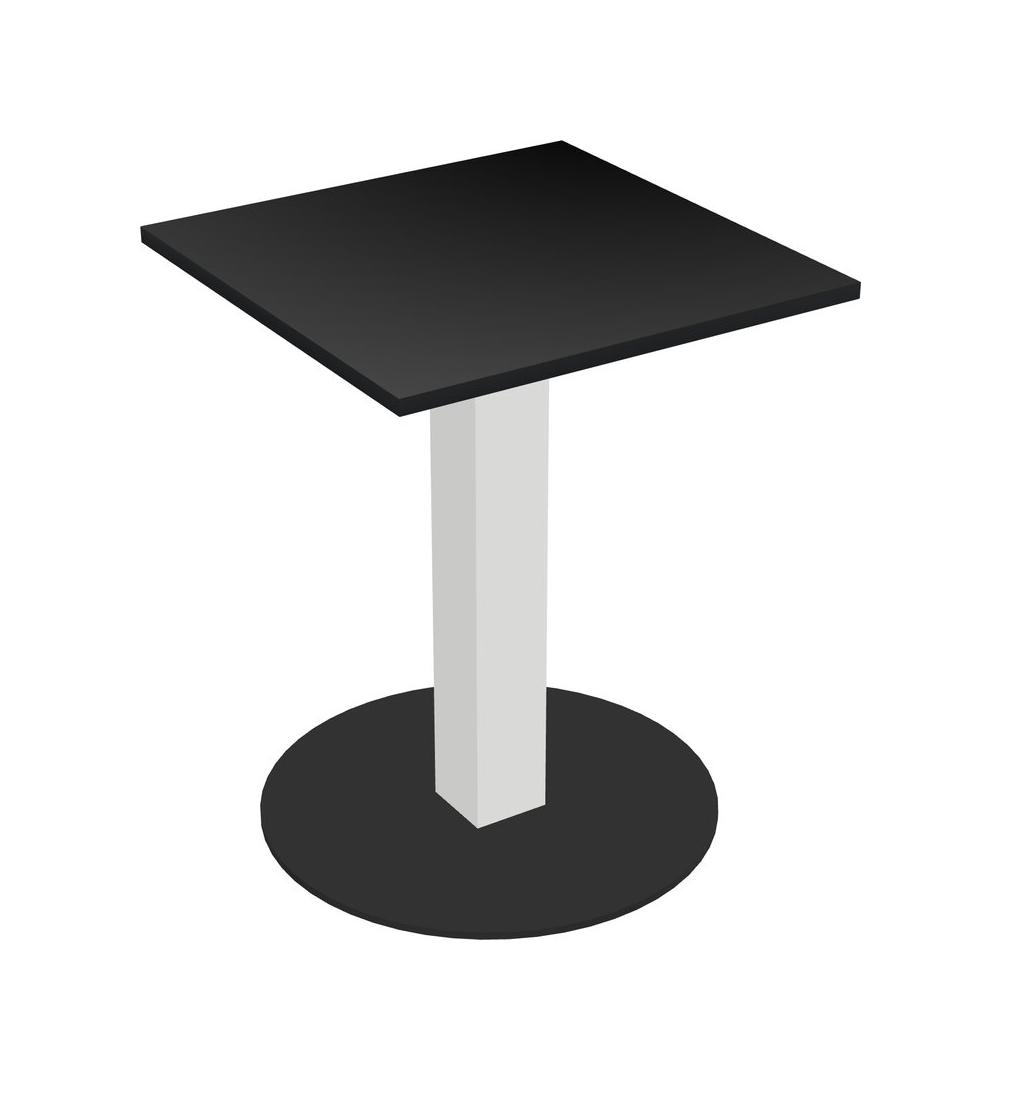Table Modulaire Pour Bureau, Restaurant, Cafétéria, Salle De Pause Et Service De Restauration, Avec Plateau Noir, Pieds Carrés Blancs Et Base Ronde Noire