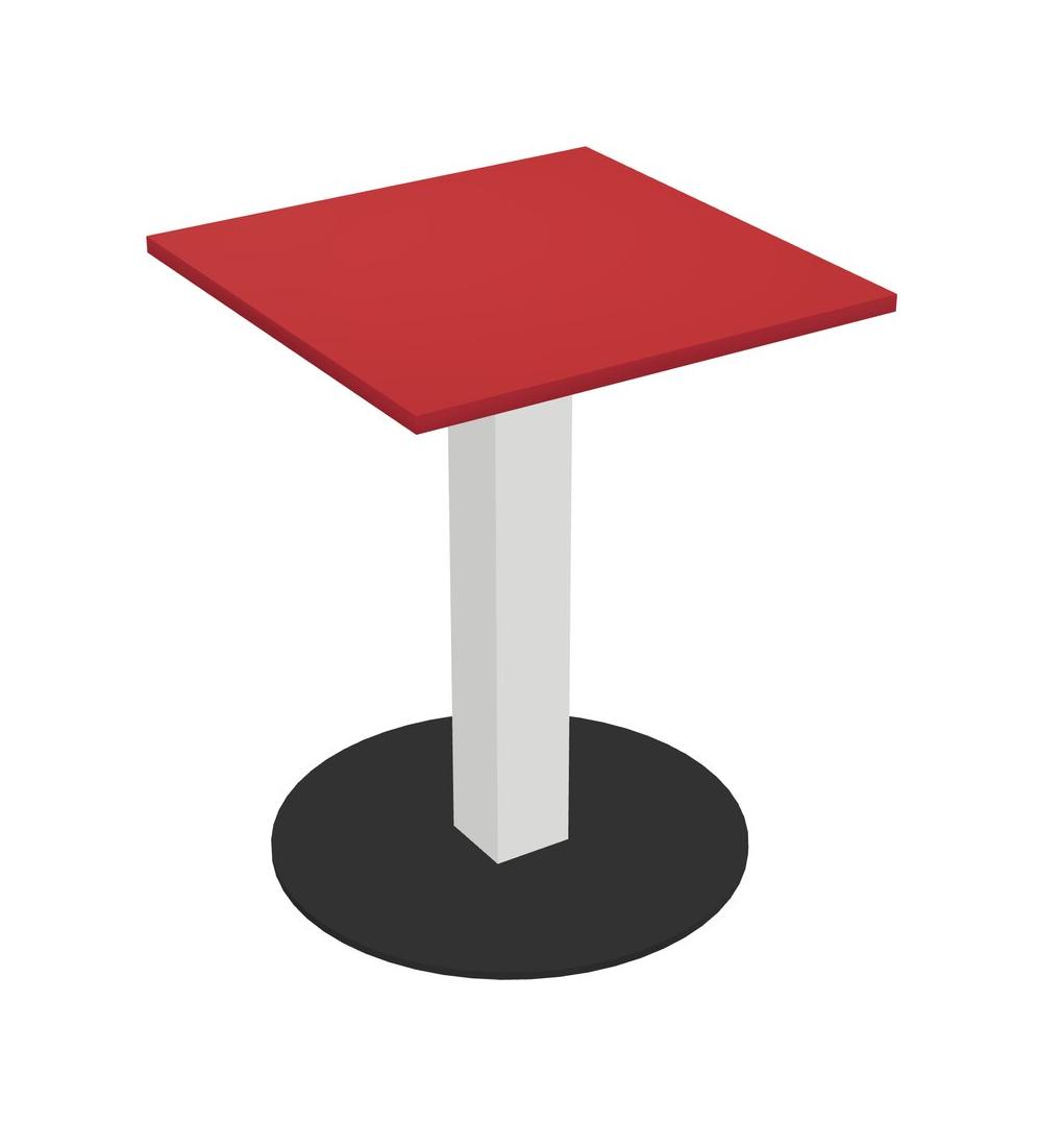 Table Modulaire Pour Bureau, Restaurant, Cafétéria, Salle De Pause Et Service De Restauration, Avec Plateau Rouge Prismatique, Pieds Carrés Blancs Et Base Ronde Noire