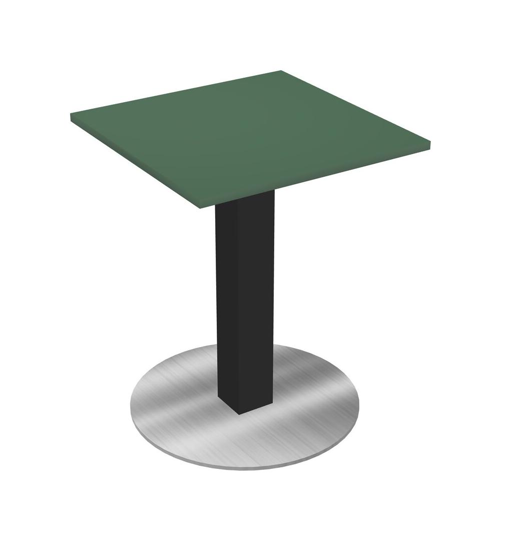 Table Modulaire Pour Bureau, Restaurant, Cafétéria, Salle De Pause Et Service De Restauration, Avec Plateau Vert, Pieds Carrés Noirs Et Base Ronde Chromée