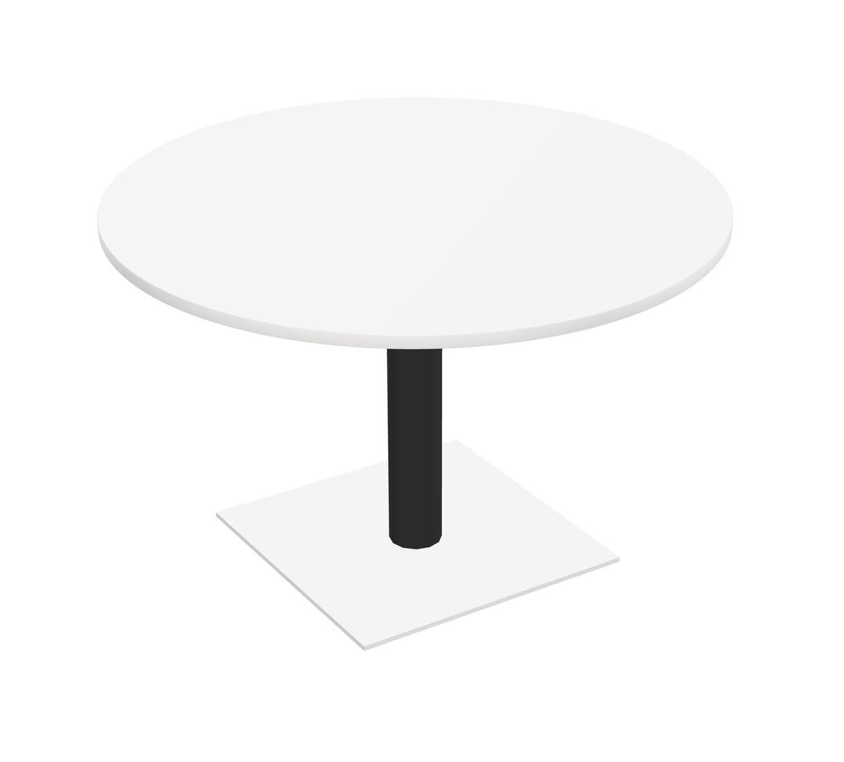 Table Modulaire Pour Bureau, Restaurant, Cafétéria, Salle De Pause Et Service De Restauration, Avec Plateau Blanc, Pieds Ronds Noirs Et Base Carrée Blanche