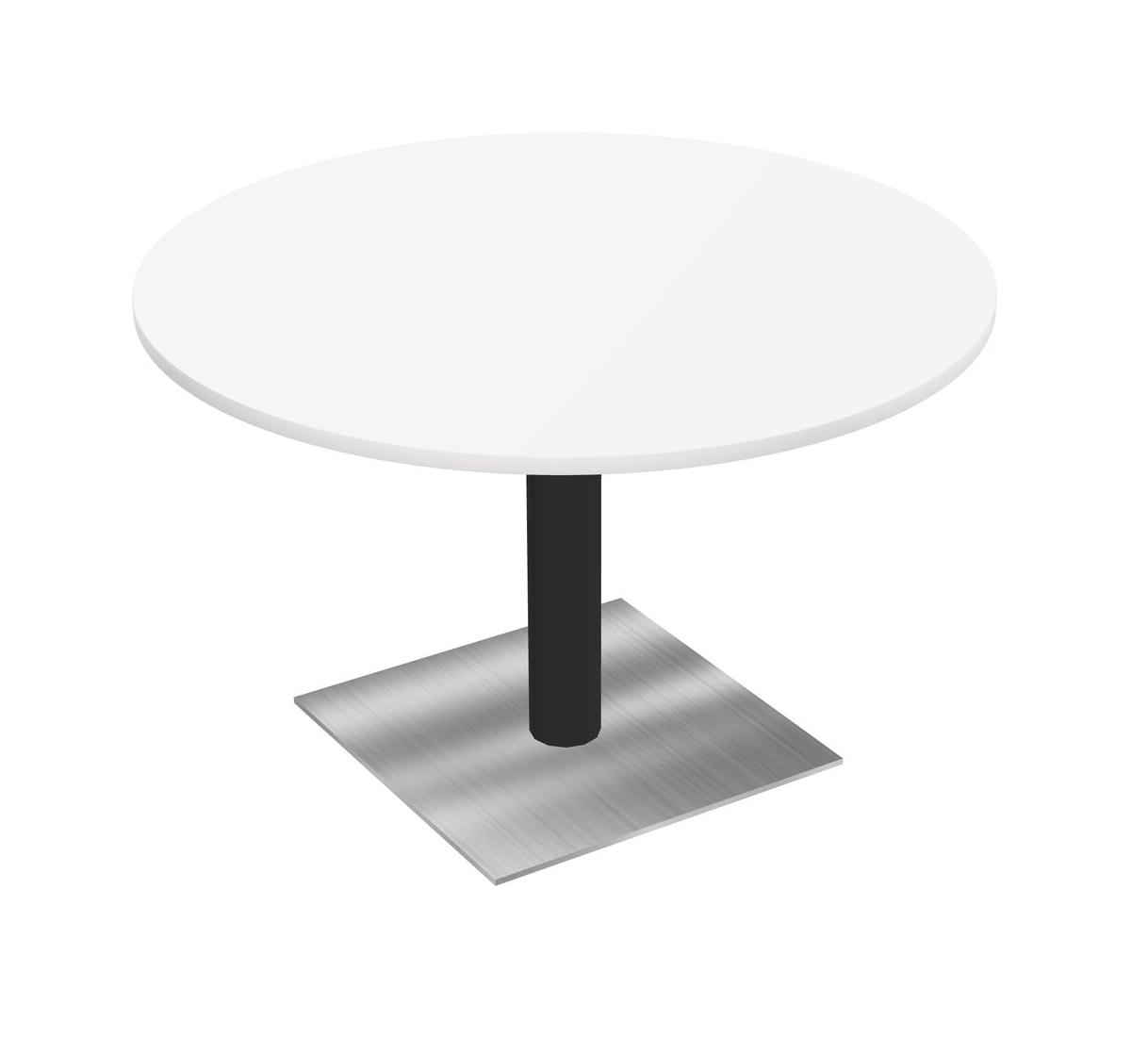 Table Modulaire Pour Bureau, Restaurant, Cafétéria, Salle De Pause Et Service De Restauration, Avec Plateau Blanc, Pieds Ronds Noirs Et Base Carrée Chromée