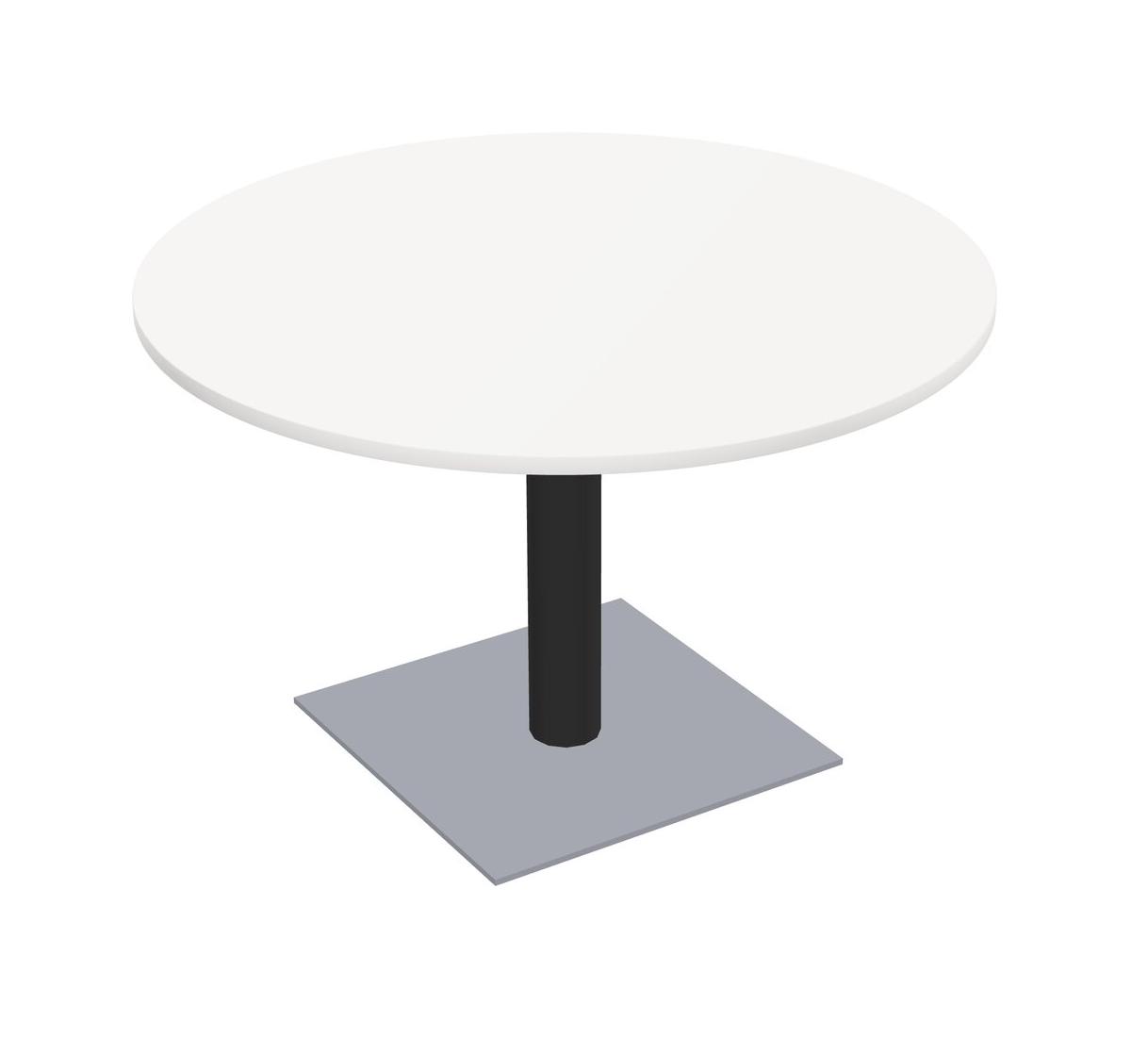Table Modulaire Pour Bureau, Restaurant, Cafétéria, Salle De Pause Et Service De Restauration, Avec Plateau Blanc, Pieds Ronds Noirs Et Base Carrée Grise