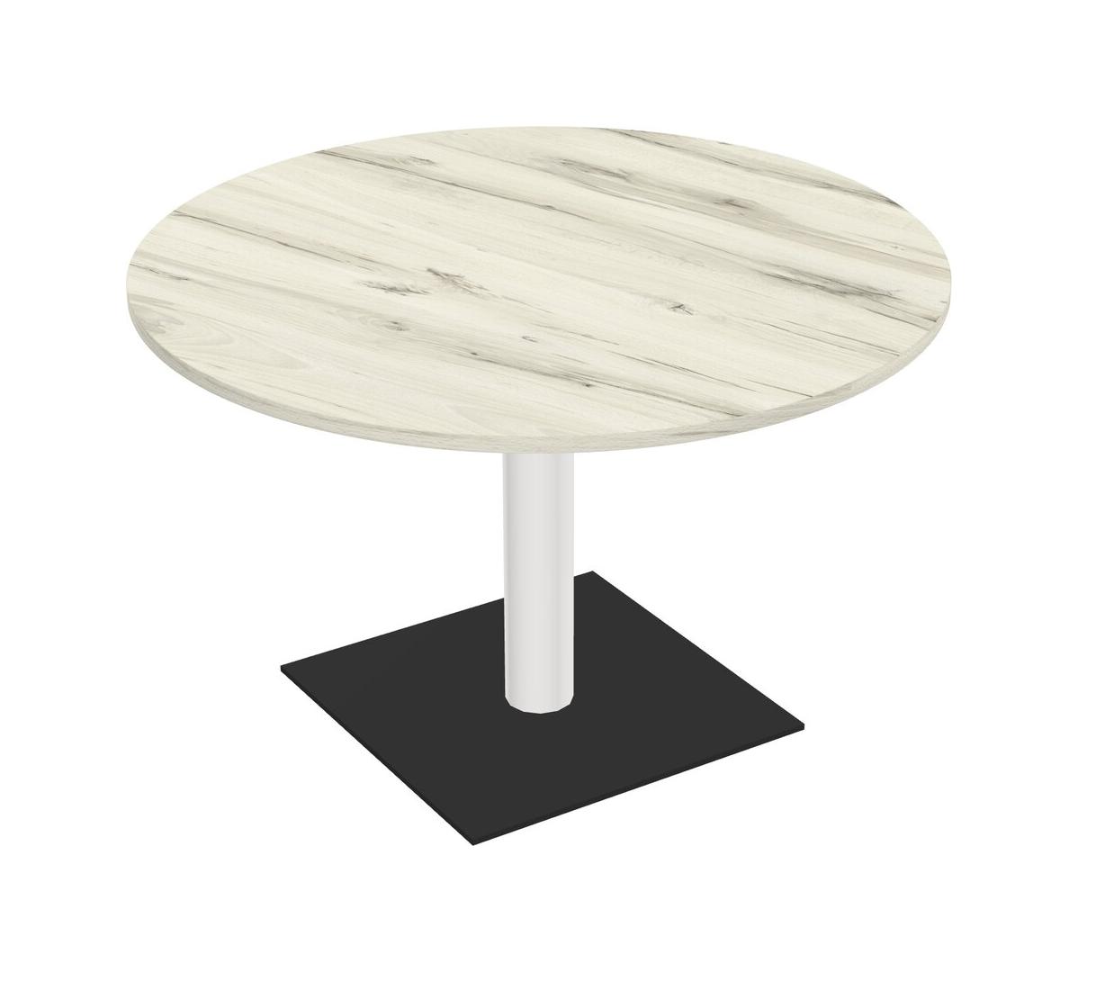 Table Modulaire Pour Bureau, Restaurant, Cafétéria, Salle De Pause Et Service De Restauration, Avec Plateau En Bois Heinne Holz, Pieds Ronds Blancs Et Base Carrée Noire