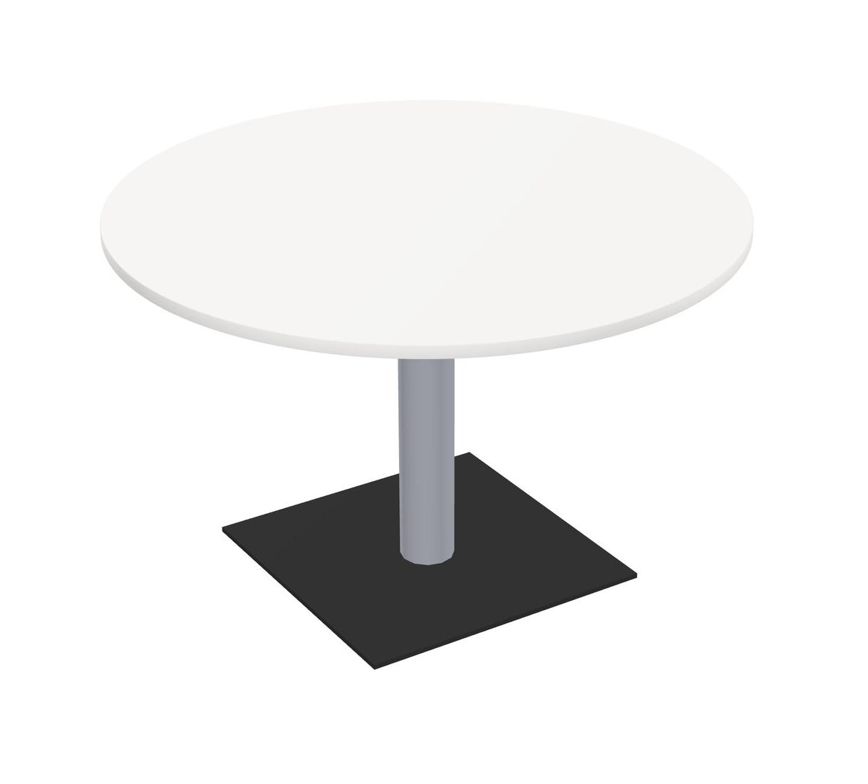 Table Modulaire Pour Bureau, Restaurant, Cafétéria, Salle De Pause Et Service De Restauration, Avec Plateau Blanc, Pieds Ronds Gris Et Base Carrée Noire