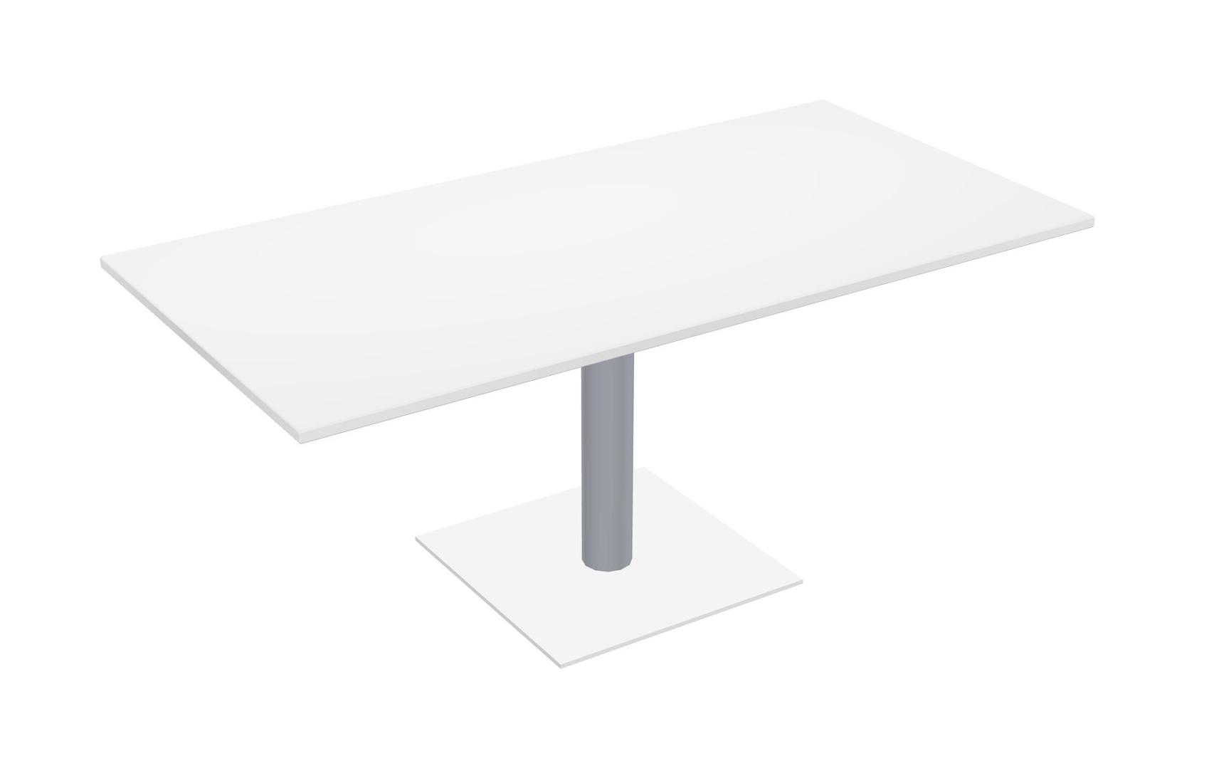 Table Modulaire Pour Bureau, Restaurant, Cafétéria, Salle De Pause Et Service De Restauration, Avec Plateau Blanc, Pieds Ronds Gris Et Base Carrée Blanche