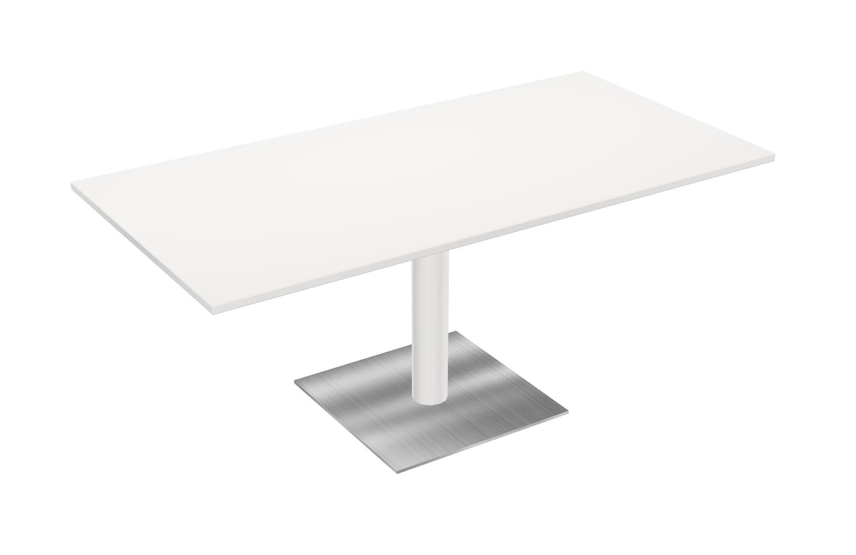 Table Modulaire Pour Bureau, Restaurant, Cafétéria, Salle De Pause Et Service De Restauration, Avec Plateau Blanc, Pieds Ronds Blancs Et Base Carrée Chromée
