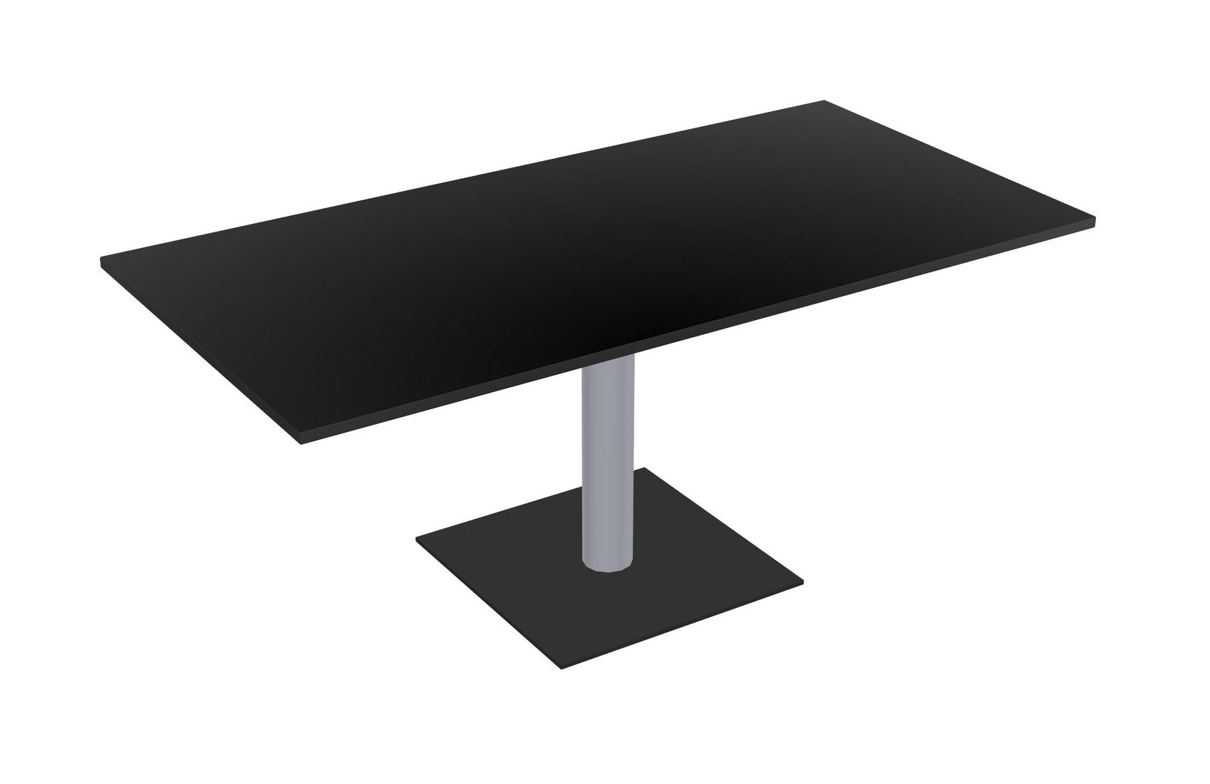 Table Modulaire Pour Bureau, Restaurant, Cafétéria, Salle De Pause Et Service De Restauration, Avec Plateau Noir, Pieds Ronds Gris Et Base Carrée Noire