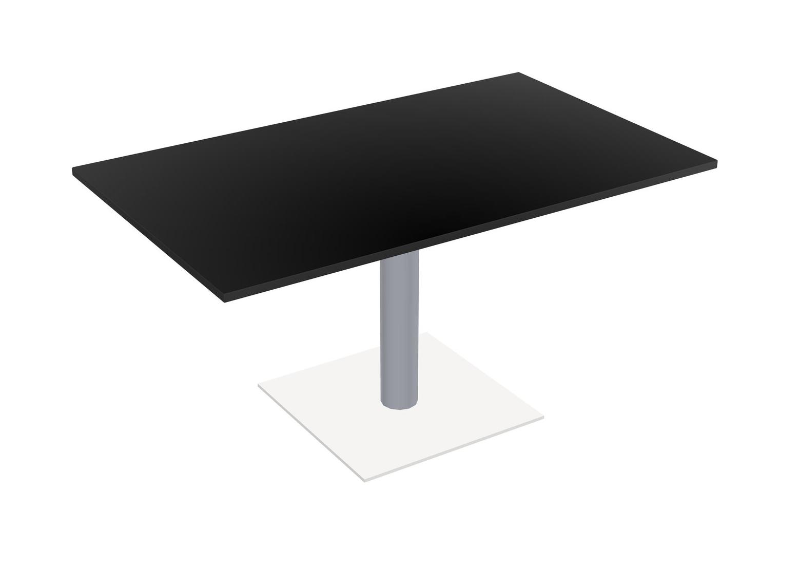 Table Modulaire Pour Bureau, Restaurant, Cafétéria, Salle De Pause Et Service De Restauration, Avec Plateau Noir, Pieds Ronds Gris Et Base Carrée Blanche