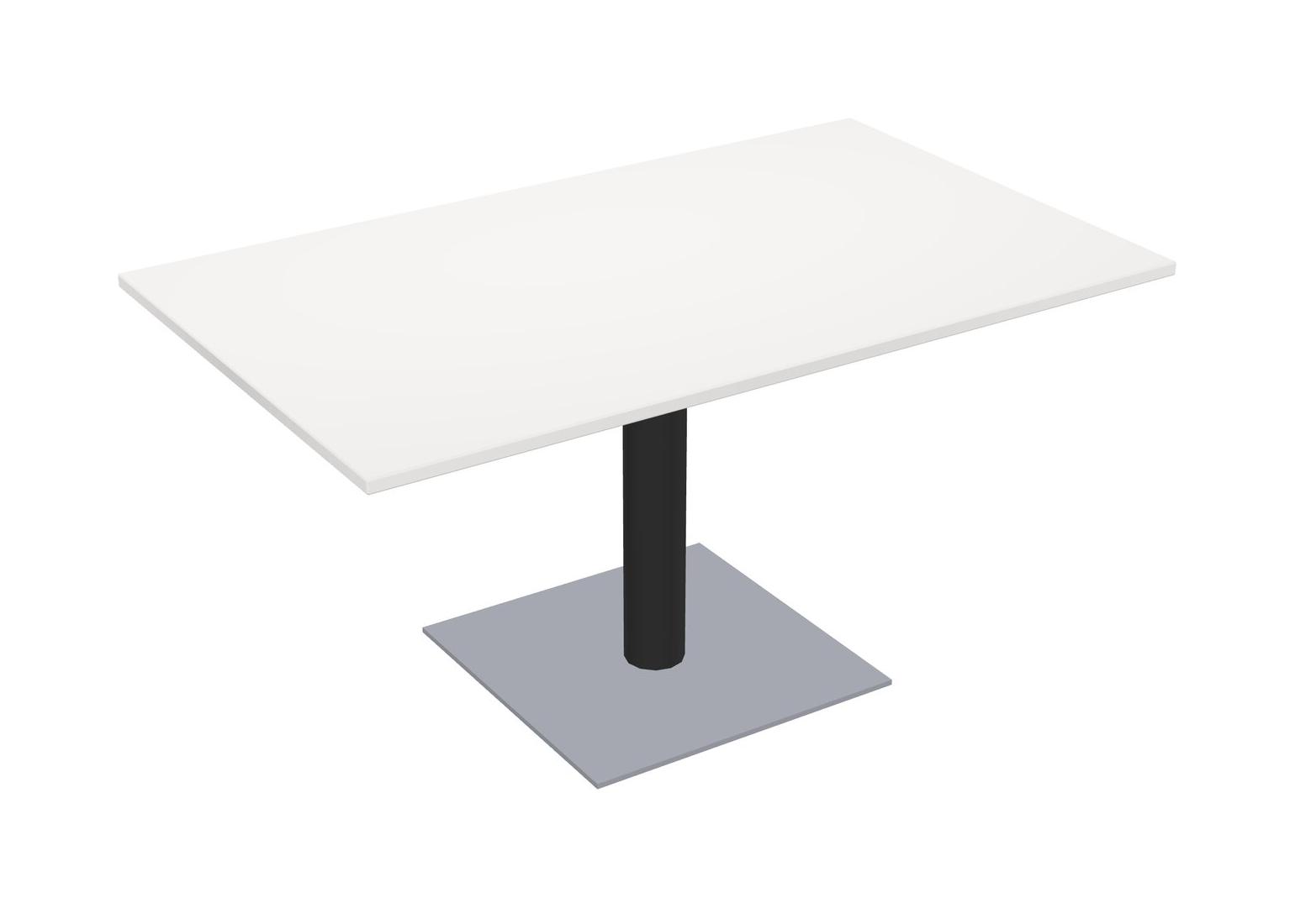 Table Modulaire Pour Bureau, Restaurant, Cafétéria, Salle De Pause Et Service De Restauration, Avec Plateau Blanc, Pieds Ronds Noirs Et Base Carrée Grise