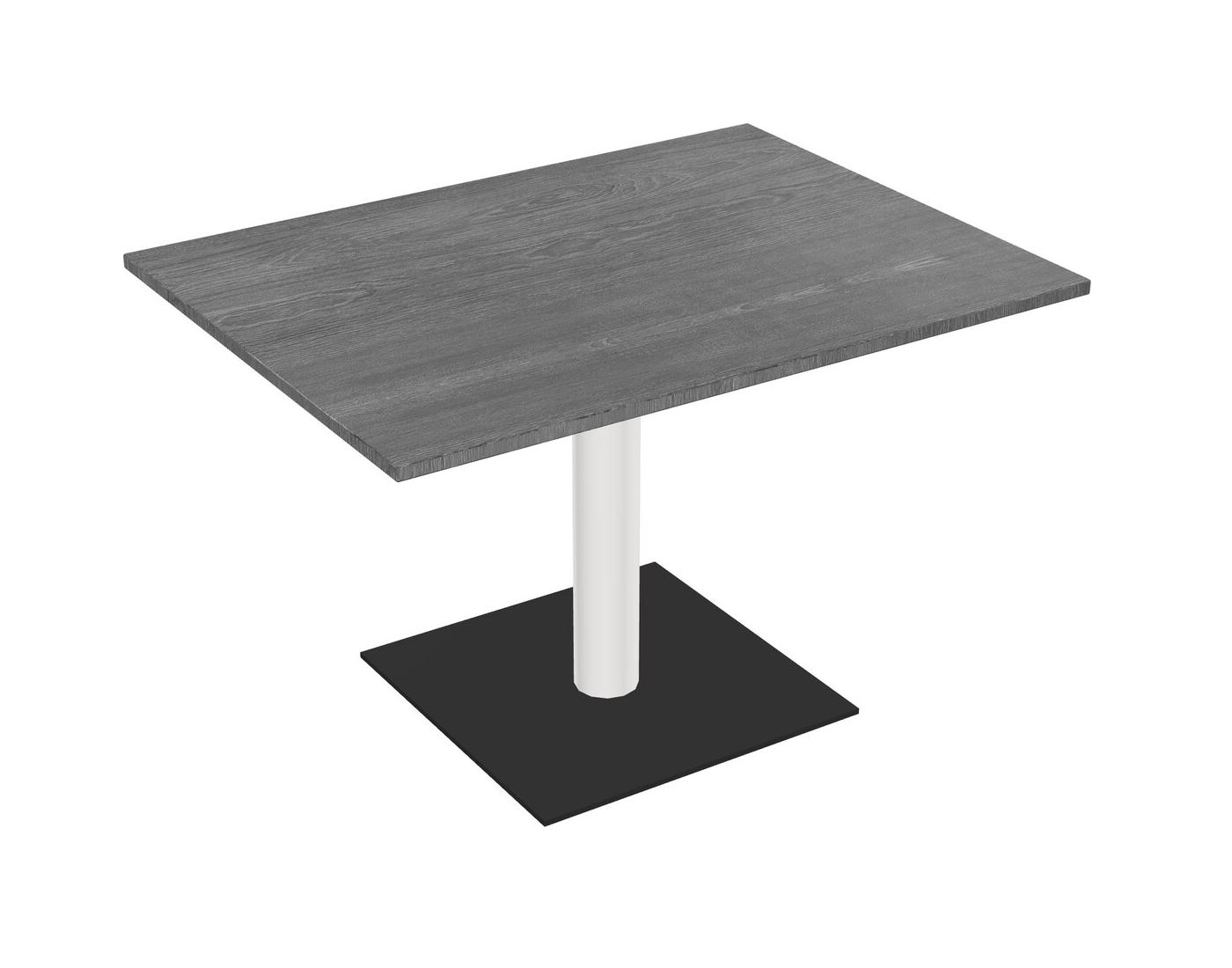 Table Modulaire Pour Bureau, Restaurant, Cafétéria, Salle De Pause Et Service De Restauration, Avec Plateau Gris, Pieds Ronds Blancs Et Base Carrée Noire
