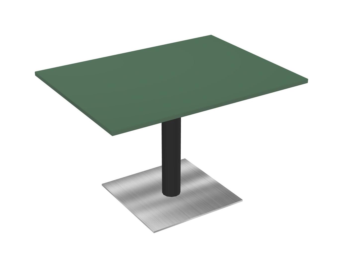 Table Modulaire Pour Bureau, Restaurant, Cafétéria, Salle De Pause Et Service De Restauration, Avec Plateau Vert, Pieds Ronds Noirs Et Base Carrée Chromée
