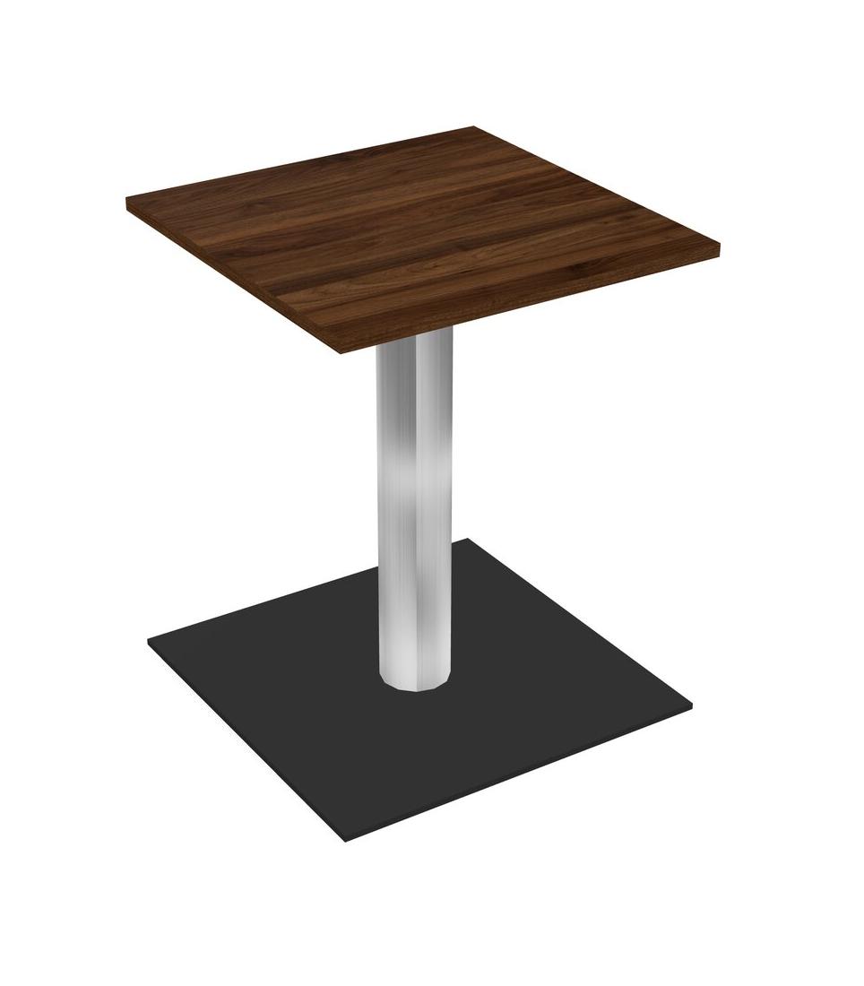Table Modulaire Pour Bureau, Restaurant, Cafétéria, Salle De Pause Et Service De Restauration, Avec Plateau En Noyer De Colombie, Pieds Ronds Chromés Et Base Carrée Noire