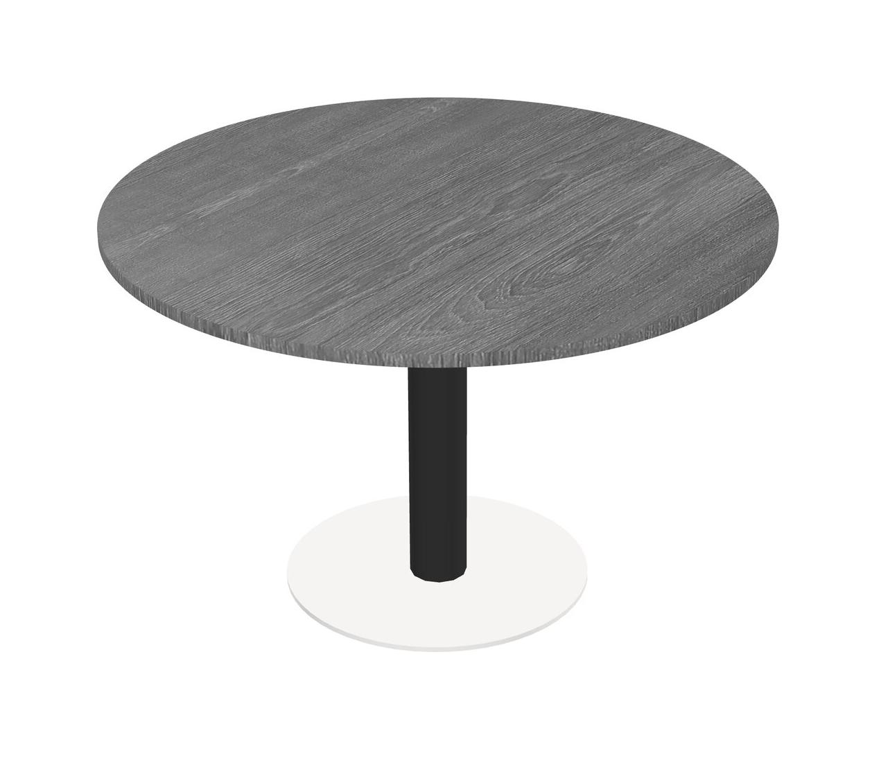 Table Modulaire Pour Bureau, Restaurant, Cafétéria, Salle De Pause Et Service De Restauration, Avec Plateau Gris, Pieds Ronds Noirs Et Base Ronde Blanche