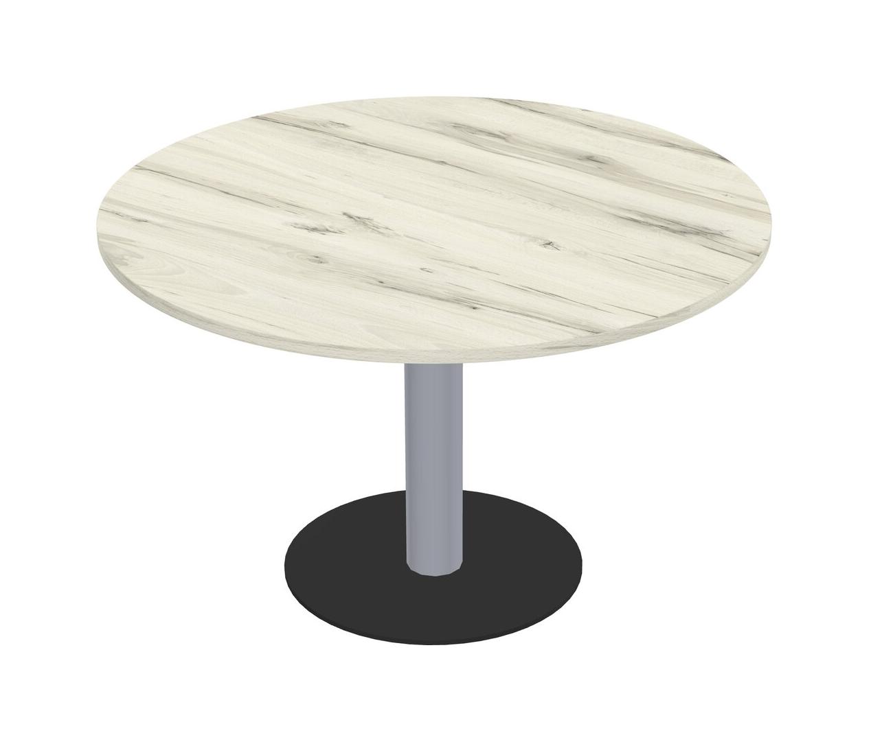 Table Modulaire Pour Bureau, Restaurant, Cafétéria, Salle De Pause Et Service De Restauration, Avec Plateau En Bois Heinne Holz, Pieds Ronds Gris Et Base Ronde Noire