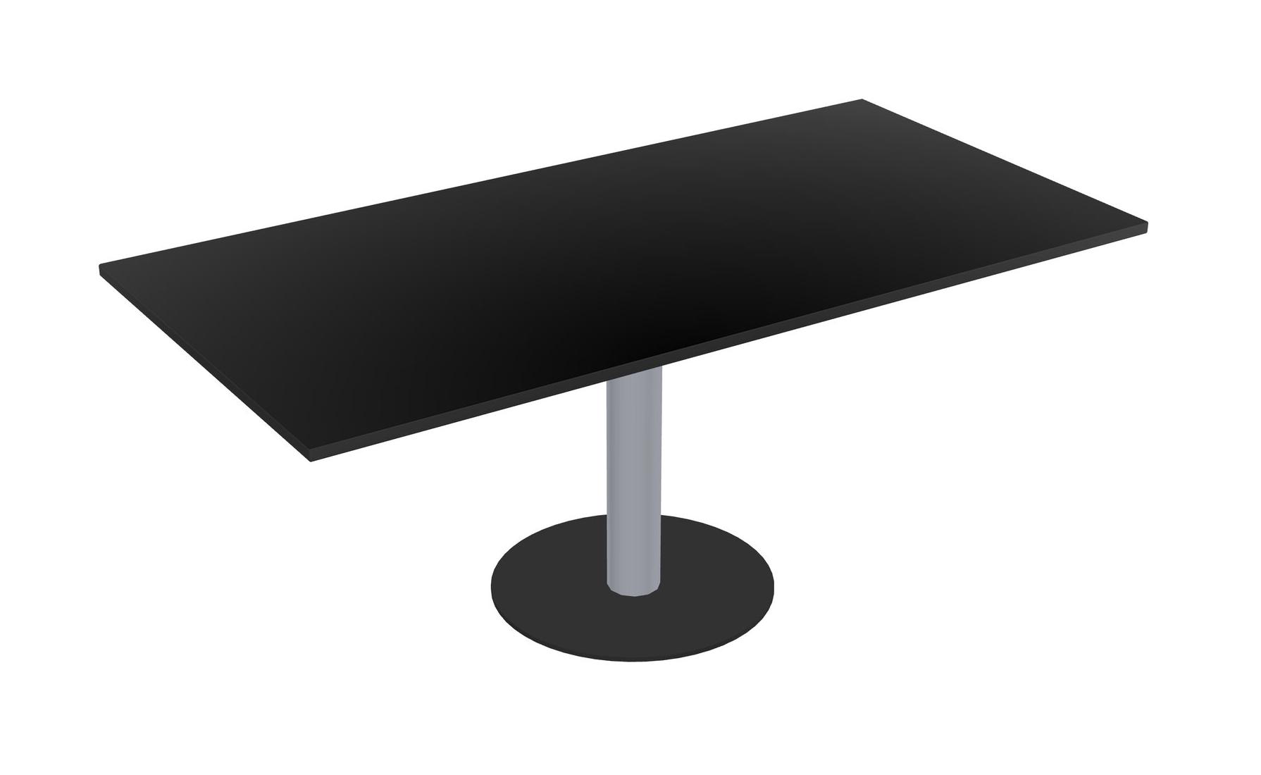 Table Modulaire Pour Bureau, Restaurant, Cafétéria, Salle De Pause Et Service De Restauration, Avec Plateau Noir, Pieds Ronds Gris Et Base Ronde Noire