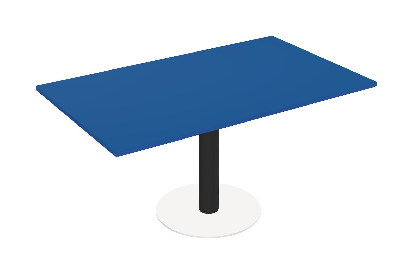 Table Modulaire Pour Bureau, Restaurant, Cafétéria, Salle De Pause Et Service De Restauration, Avec Plateau Bleu Prismatique, Pieds Ronds Noirs Et Base Ronde Blanche