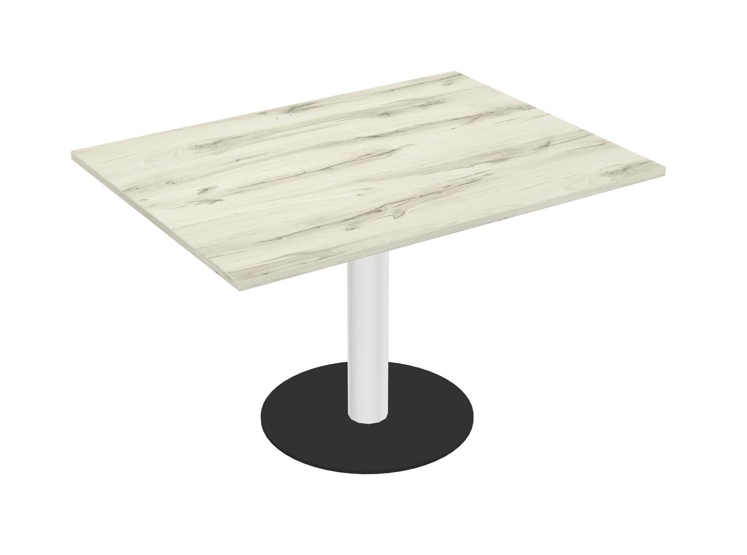 Table Modulaire Pour Bureau, Restaurant, Cafétéria, Salle De Pause Et Service De Restauration, Avec Plateau En Bois Heinne Holz, Pieds Ronds Blancs Et Base Ronde Noire