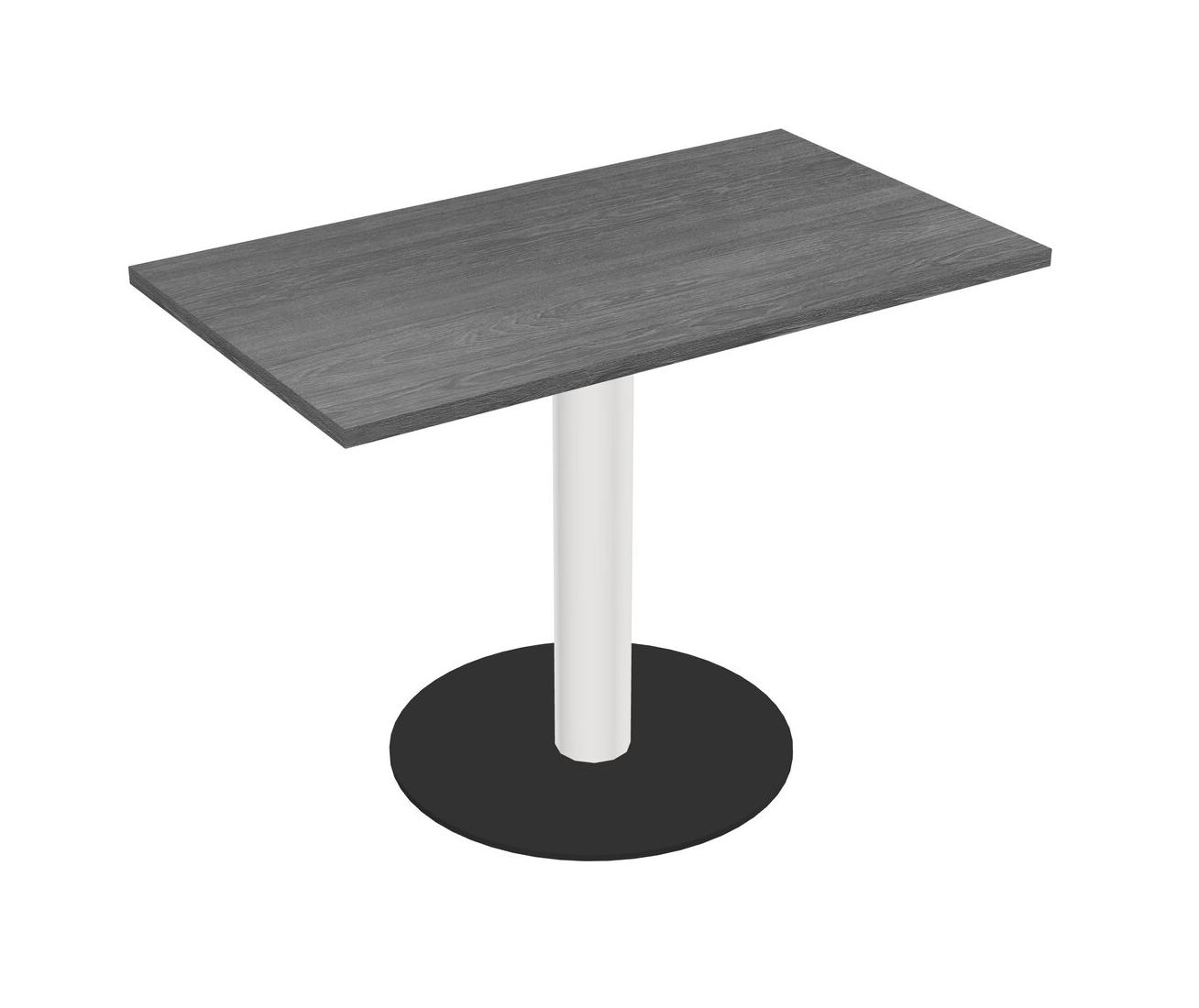 Table Modulaire Pour Bureau, Restaurant, Cafétéria, Salle De Pause Et Service De Restauration, Avec Plateau Gris, Pieds Ronds Blancs Et Base Ronde Noire