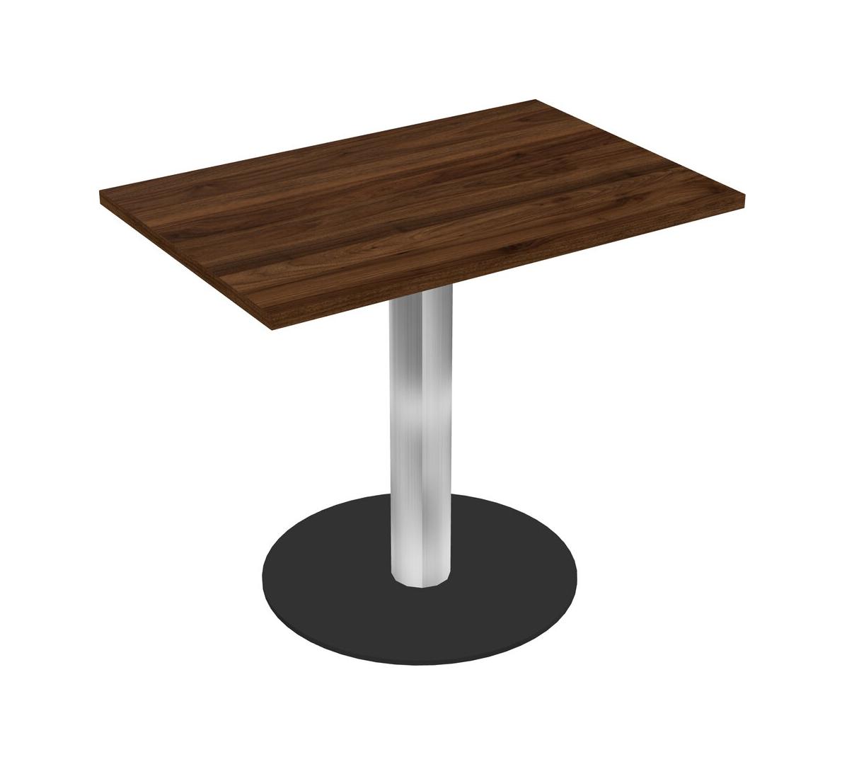 Table Modulaire Pour Bureau, Restaurant, Cafétéria, Salle De Pause Et Service De Restauration, Avec Plateau En Noyer De Colombie, Pieds Ronds Chromés Et Base Ronde Noire