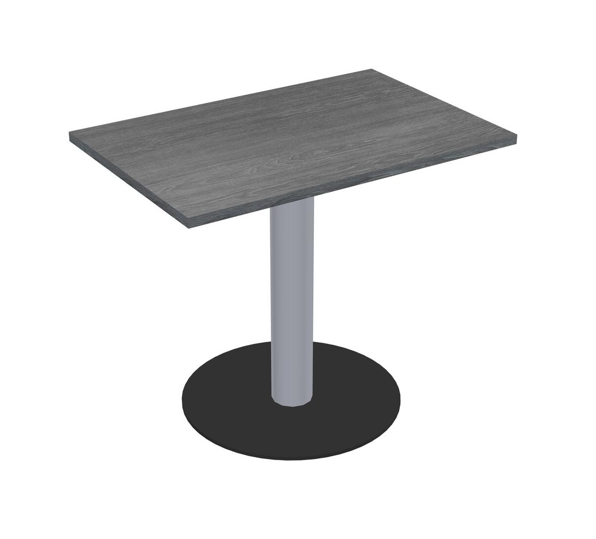Table Modulaire Pour Bureau, Restaurant, Cafétéria, Salle De Pause Et Service De Restauration, Avec Plateau Gris, Pieds Ronds Gris Et Base Ronde Noire