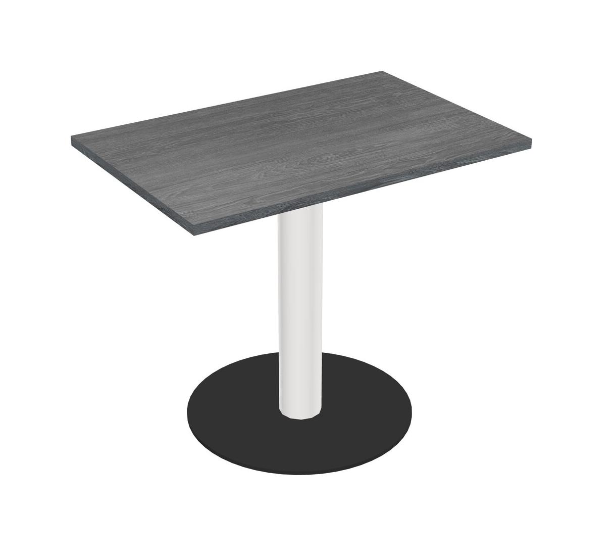 Table Modulaire Pour Bureau, Restaurant, Cafétéria, Salle De Pause Et Service De Restauration, Avec Plateau Gris, Pieds Ronds Blancs Et Base Ronde Noire