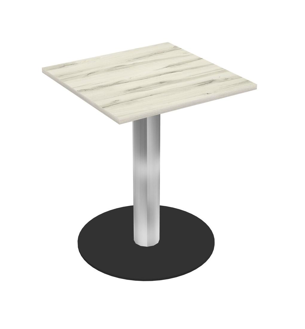 Table Modulaire Pour Bureau, Restaurant, Cafétéria, Salle De Pause Et Service De Restauration, Avec Plateau En Bois Heinne Holz, Pieds Ronds Chromés Et Plaque De Base Ronde Noire