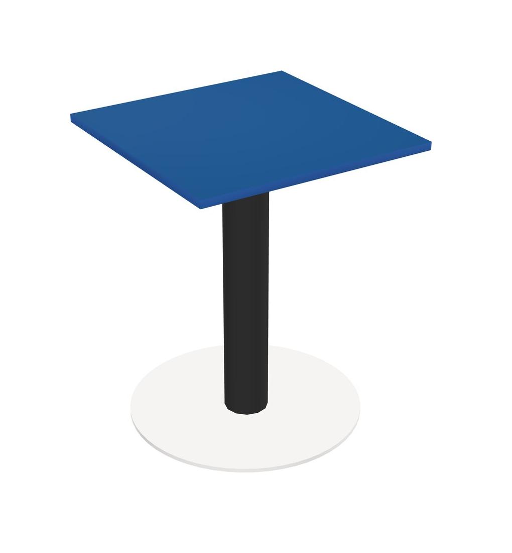 Table Modulaire Pour Bureau, Restaurant, Cafétéria, Salle De Pause Et Service De Restauration, Avec Plateau Bleu Prismatique, Pieds Ronds Noirs Et Base Ronde Blanche